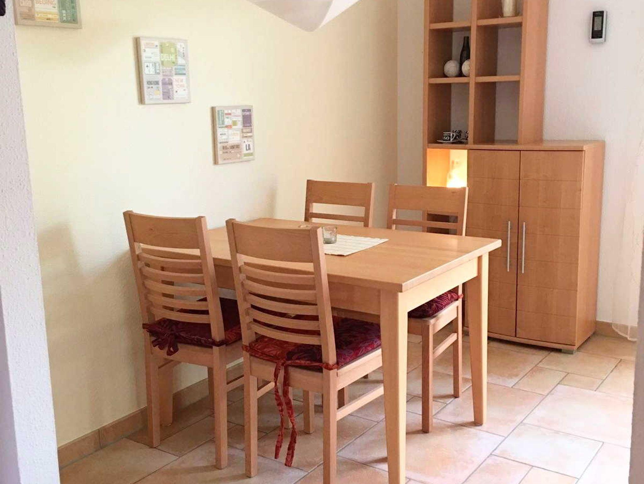 Die Ferienwohnung liegt im Erdgeschoss. Sie wurde 2014 neu renoviert und modern ausgestattet. Sie ist ruhig gelegen und bietet Ihnen einen hohen Komfort. Vom Wohnbereich aus können Sie direkt auf die Terrasse gehen und dort mit Blick ins Grüne Ihren Kaffee trinken oder frühstücken.