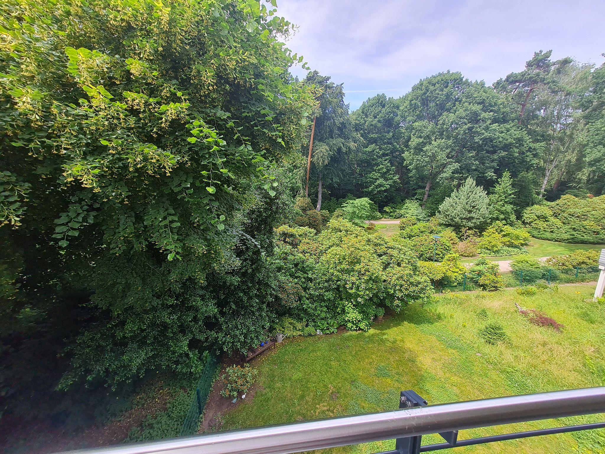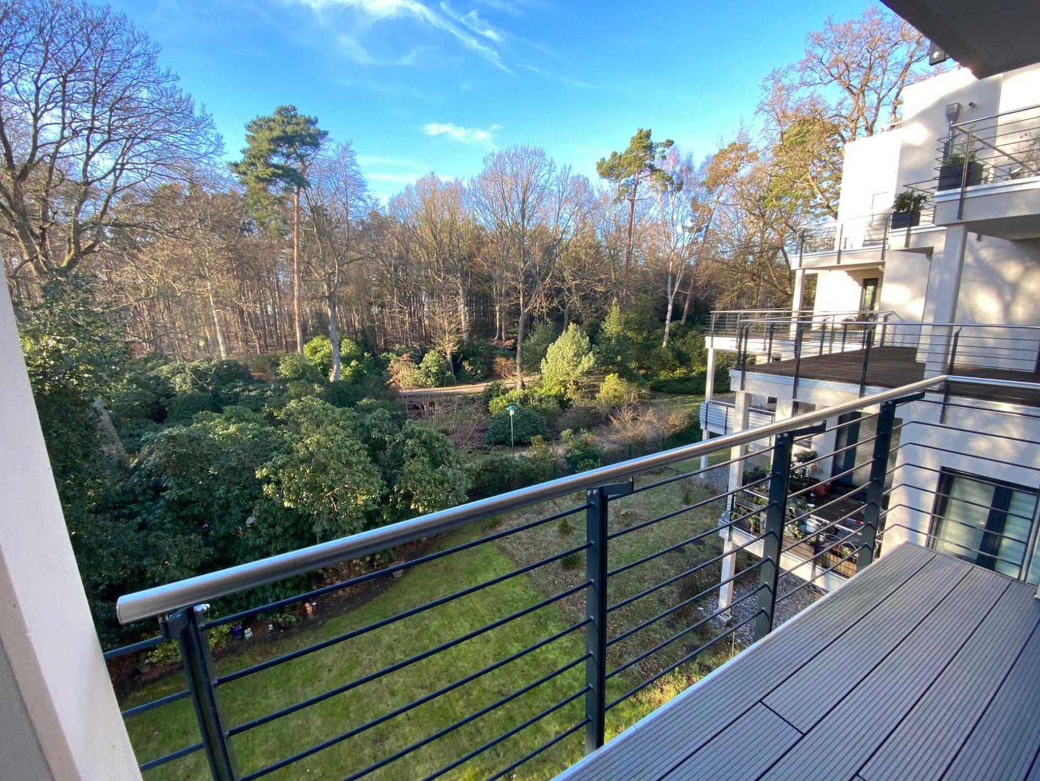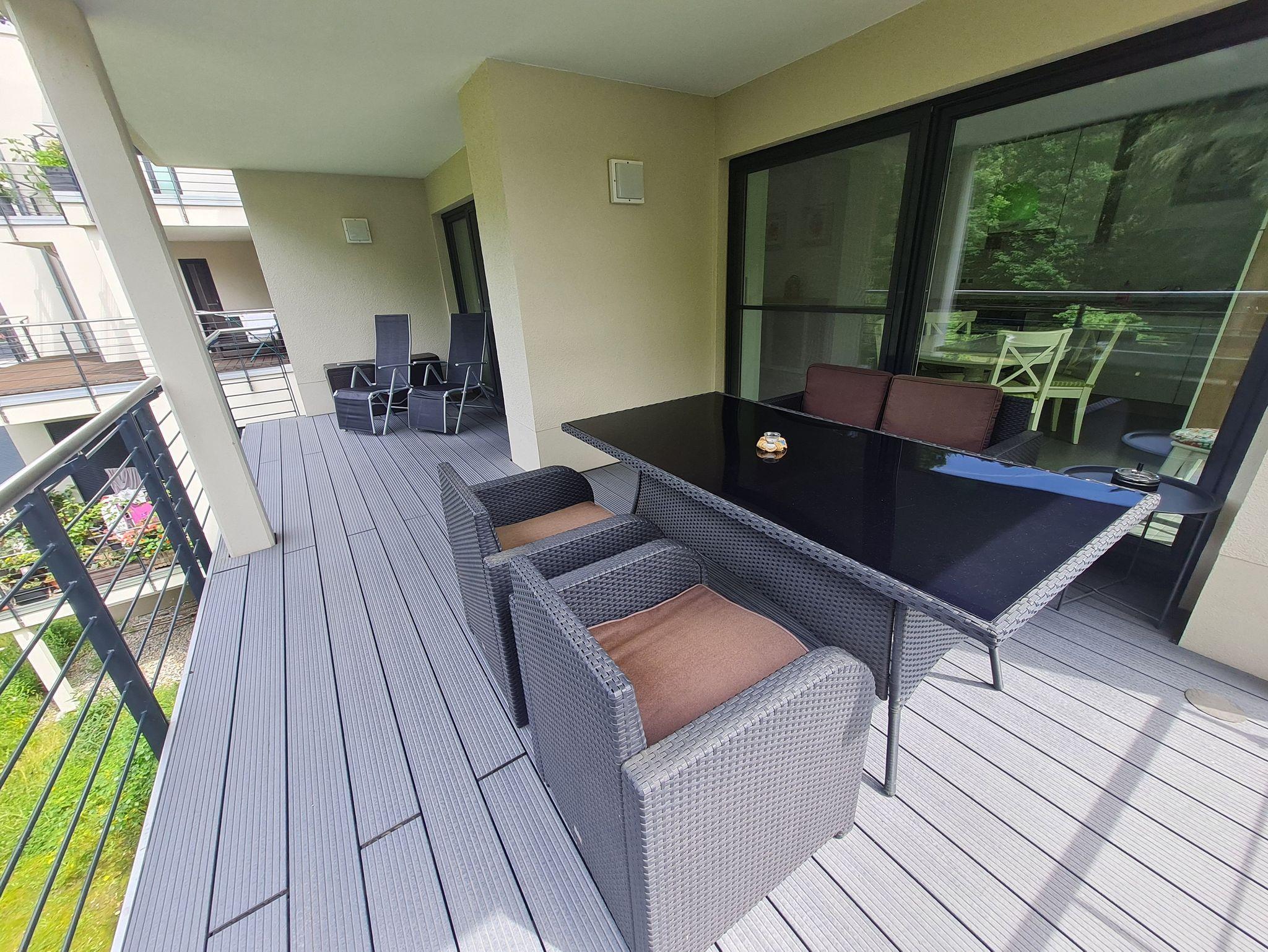 • Terrasse: Westausrichtung, große Terrasse über gesamte Länge mit Tisch, Stühle für 4 Personen, Blick auf den Rhododendronpark