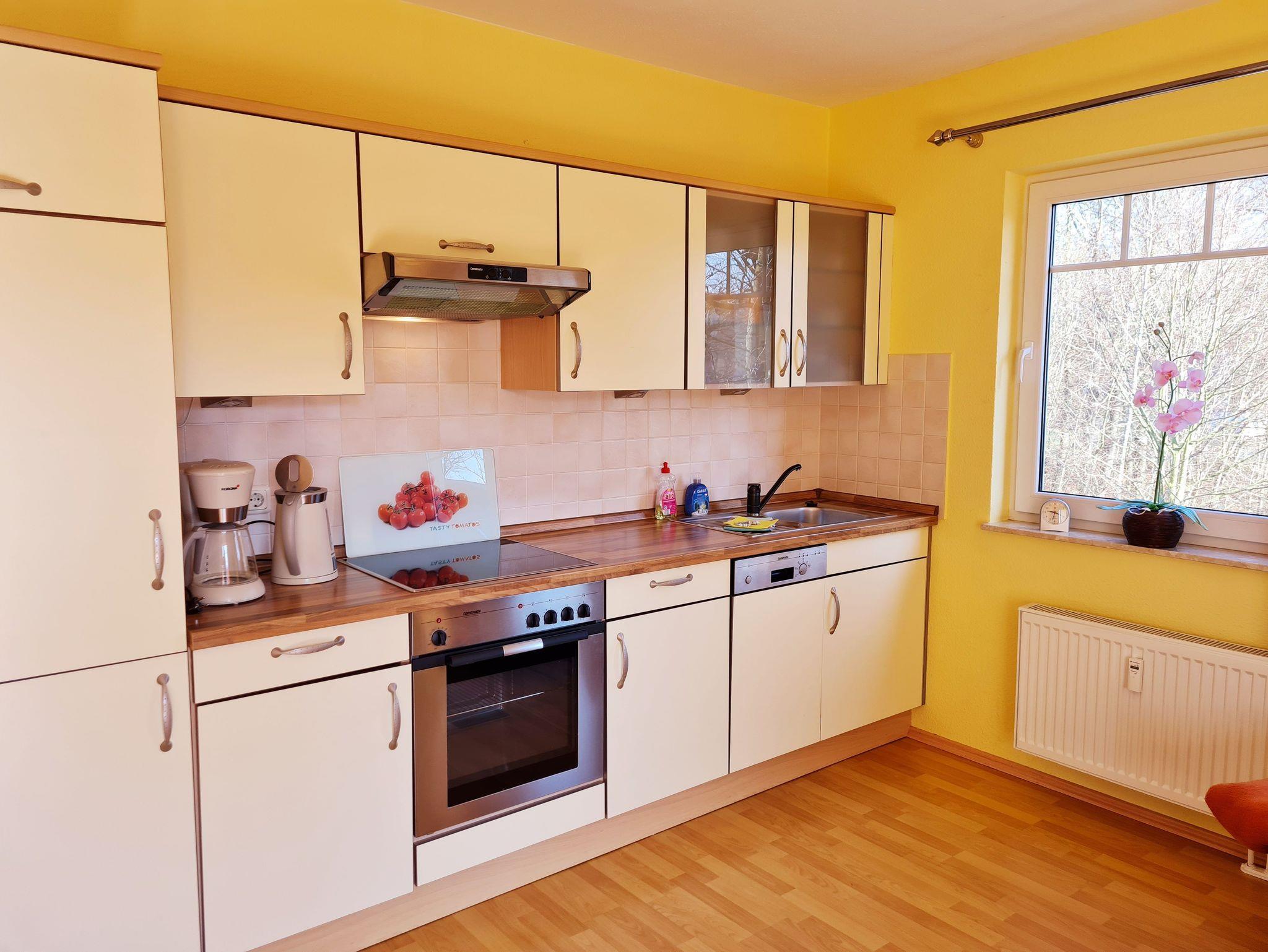 • Küche und Essbereich für 4 Personen, offen zum Wohnzimmer, komplett eingerichtete Einbauküche mit Backofen, Ceranfeld, Geschirrspüler, Toaster, Kaffeemaschine, Wasserkocher, Kühlschrank mit Gefrierfach