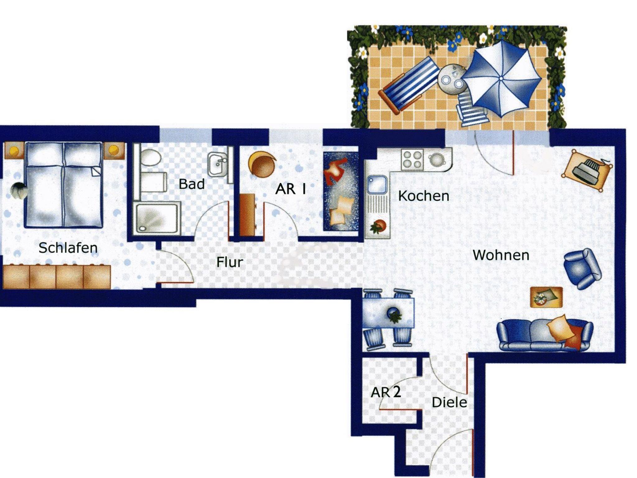 Nur 250m vom Rhododendronpark und 600m vom Strand entfernt liegt diese gemütlich und modern eingerichtete 3-Raum-Wohnung in der Hochparterre mit ca. 61 m² Wohnfläche und einer sonnigen Westterrasse. Die sehr helle und familienfreundliche Wohnung kann mit bis zu 4 Personen (max. 2 Erwachsene und 2 Kinder bis 16 Jahre) genutzt werden. Zwei separate Schlafzimmer bieten Platz hierfür. Praktisch erreichbar befindet sich in dem Objekt ein allgemeiner Fahrradraum der Platz für Fahrräder o. ä. bietet. Ein kostenloser Tiefgaraden-Stellplatz Nr. 2 steht Ihnen zur Verfügung. Eine Waschmaschine steht Ihnen hier ebenso kostenlos zur Verfügung.