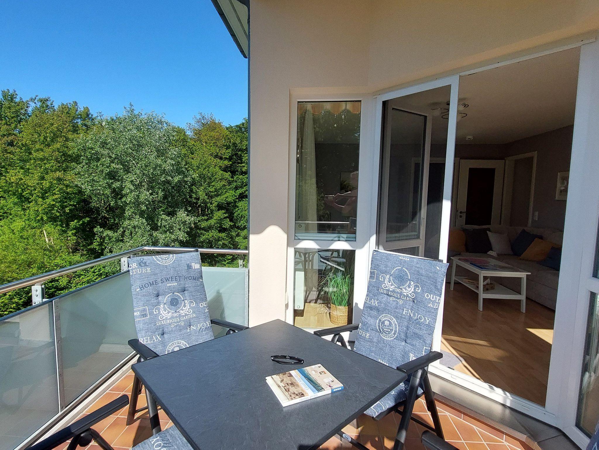 • Balkon: 8,4 qm Nord-West-Balkon 4 Klappsessel mit Balkontisch, Markise