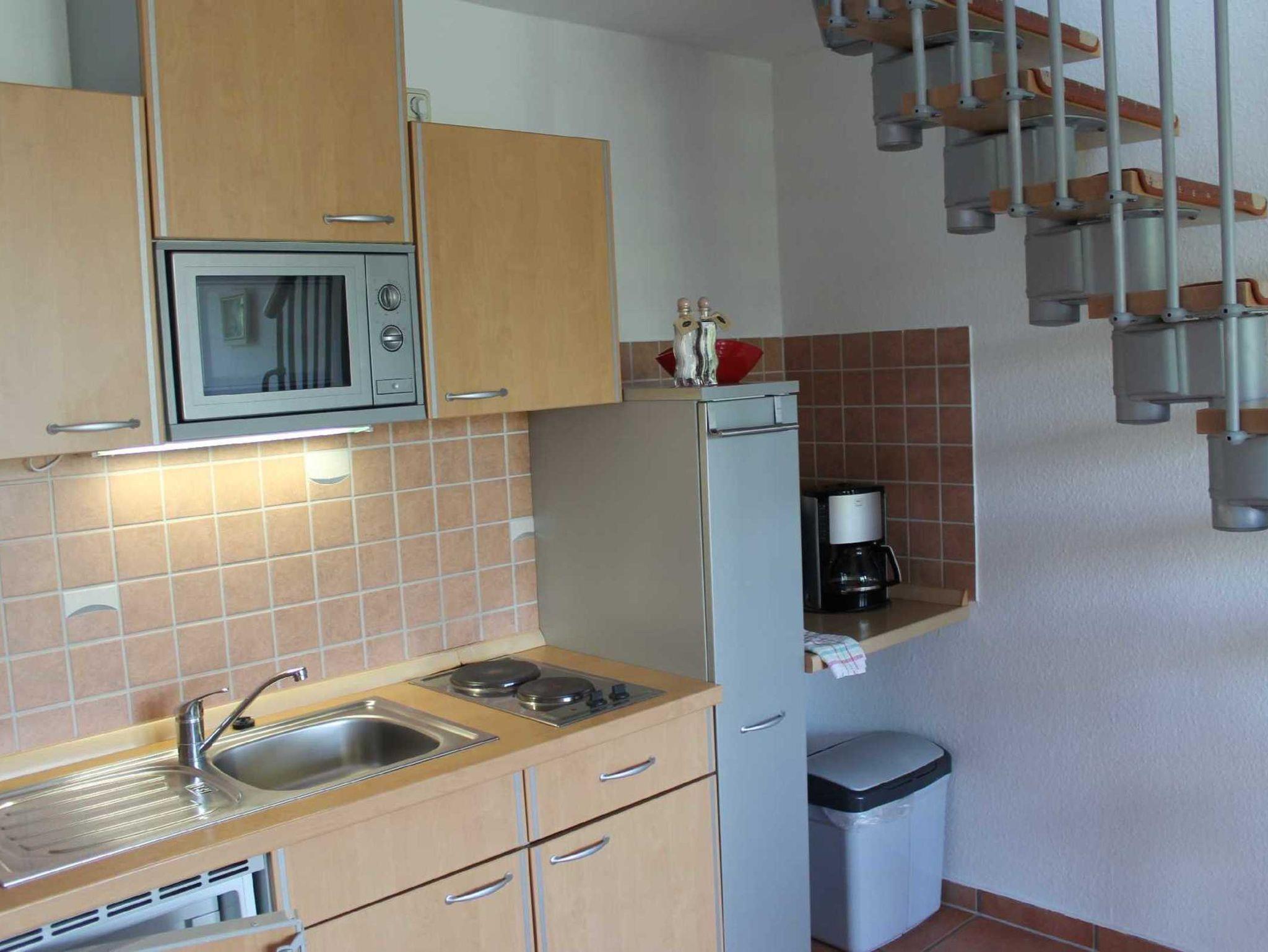 integrierter Küche (Spülmaschine, Ceran-Kochfeld, Backofen, Toaster, Wasserkocher, Kaffeemaschine) mit schöner Essecke.1 Schlafraum (Doppelbett), Du/WC.