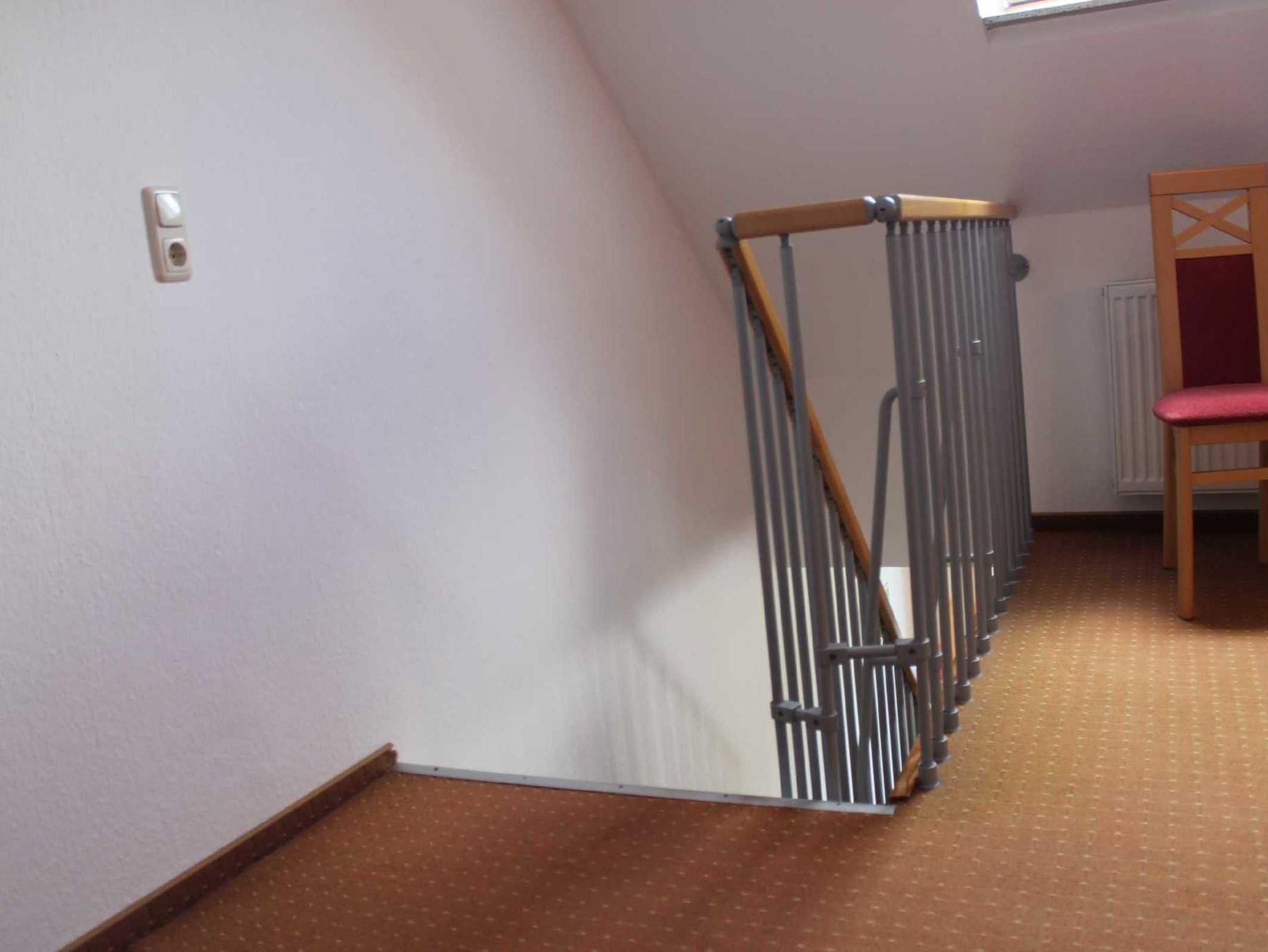 Eine Treppe führt ins Dachgeschoss. Dort 1 offener Schlafraum (3 Einzelbetten)