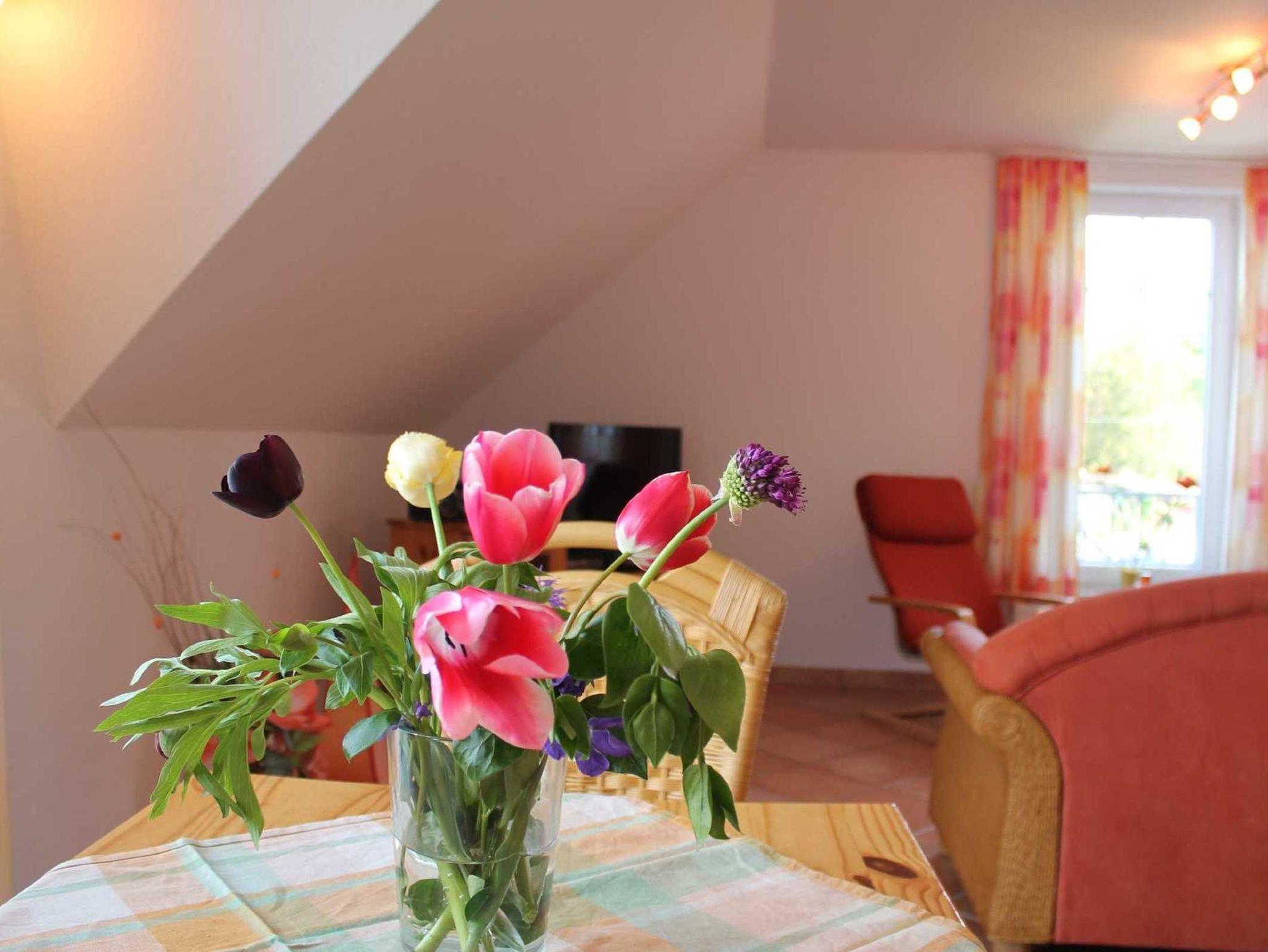 3-Raum-Ferienwohnung 60qm, mit Balkon über 2 Ebenen im OG eines Doppelhauses in ruhiger Lage.