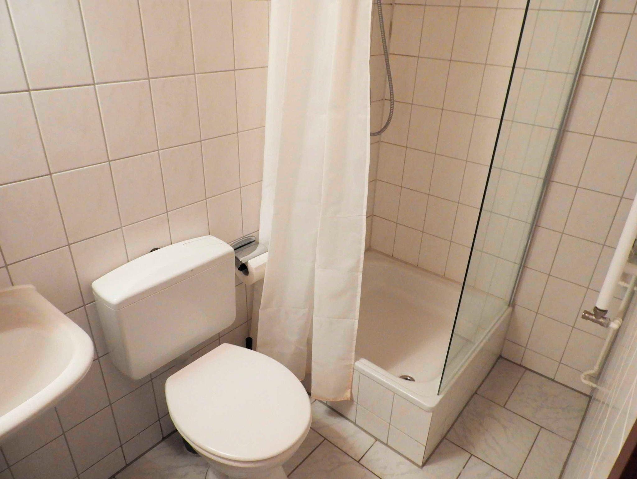 Im Bad befinden sich Dusche, Waschbecken und WC. Es gibt einen Wäscheständer.