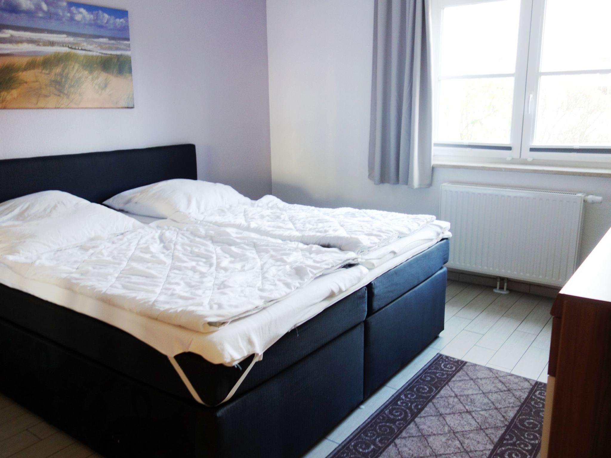 Das Schlafzimmer verfügt über ein Doppelbett mit 2 Nachttischen und einen großen Schrank.