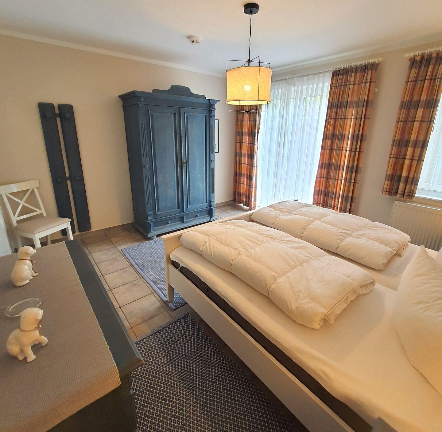 Ferienwohnung in einem Appartmenthaus, nur 150m zum Strand, ca.55 m² groß, Erdgeschoss mit Terrasse, im Wohnzimmer befindet sich eine Couch mit Schlaffunktion für die 3 und 4 Personen, die offene Küchenzeile ist komplett ausgestattet ( E-Herd ohne Backofen). Im Schlafzimmer befindet sich ein Doppelbett (1,80m x 2,00 m), bodentiefe Fenster mit Aussenjalousie im Wohnzimmer und Schlafzimmer lassen viel Licht in die Wohnung. Im innenliegenes Bad befinden sich Dusche/WC.