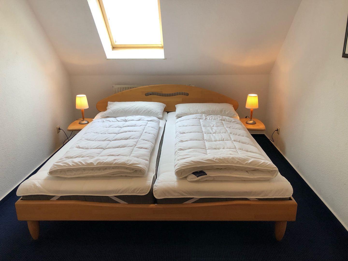 Die Ferienwohnung verfügt über ein Schlafzimmer, das mit einem Doppelbett ausgestattet ist. Das Bad ist mit einer Badewanne und einem WC ausgestattet.