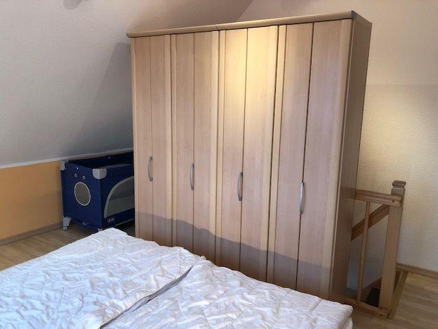 OG. Schlafzimmer mit Ehebett, Kinderstuhl,