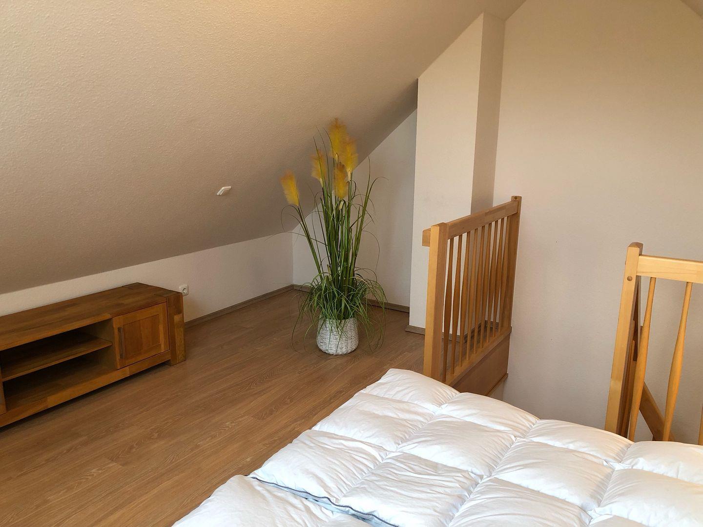 Im Spitzboden befindet sich das 3. Schlafzimmer mit 1 Doppelbett.