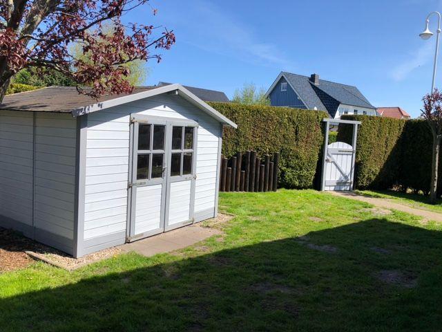 Fernseher mit Sat-TV, Radio/CD, DVD-Player, Dusche/WC, Terrasse mit Gartenmöbel, Gartenhaus