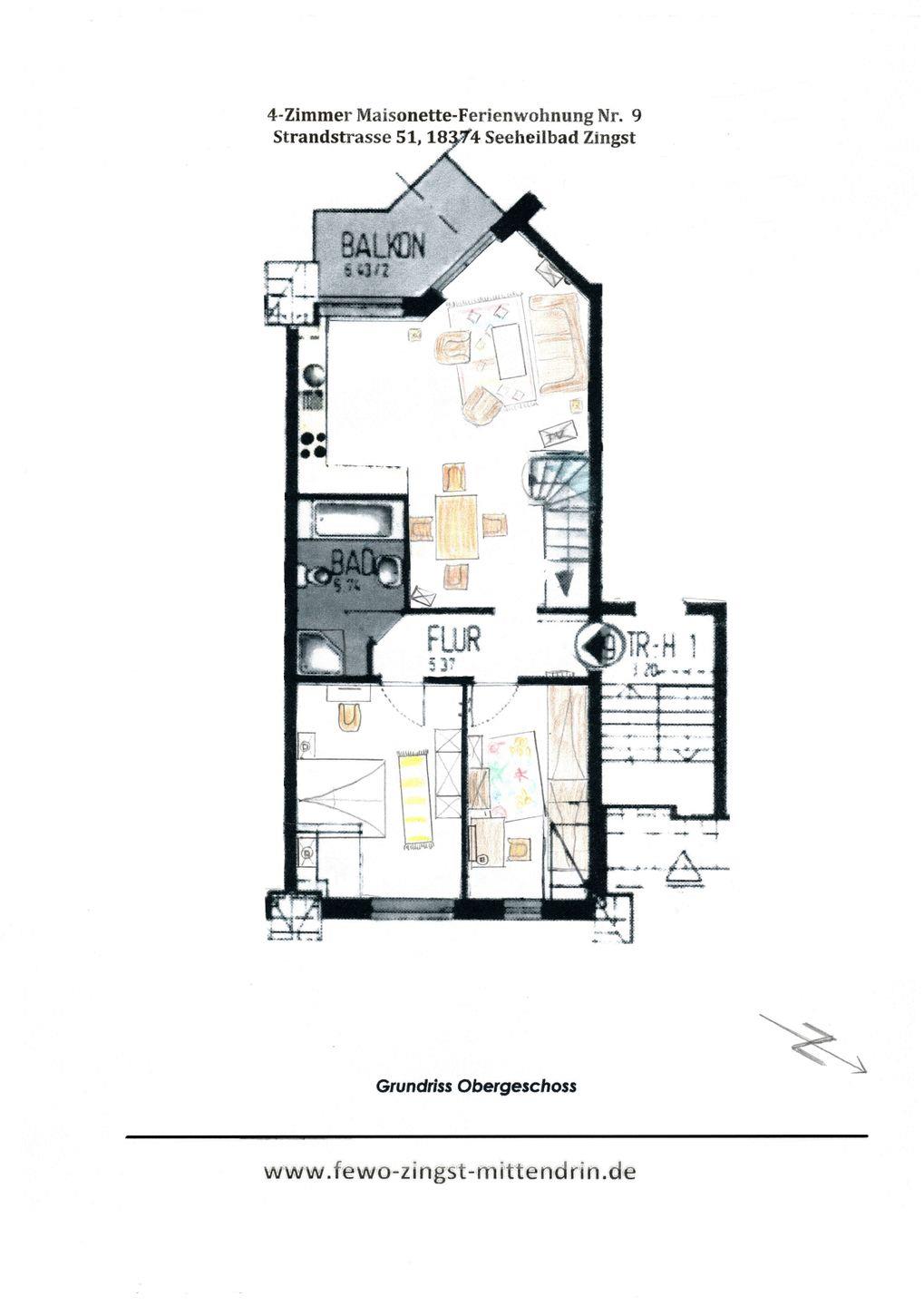4-Zimmer Komfort-Maisonette Ferienwohnung in einem Wohn-Geschäftshaus in verkehrsberuhigter Lage, ca.80m², 200 m zum Strand.