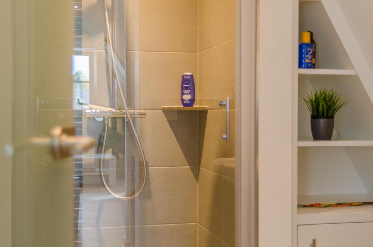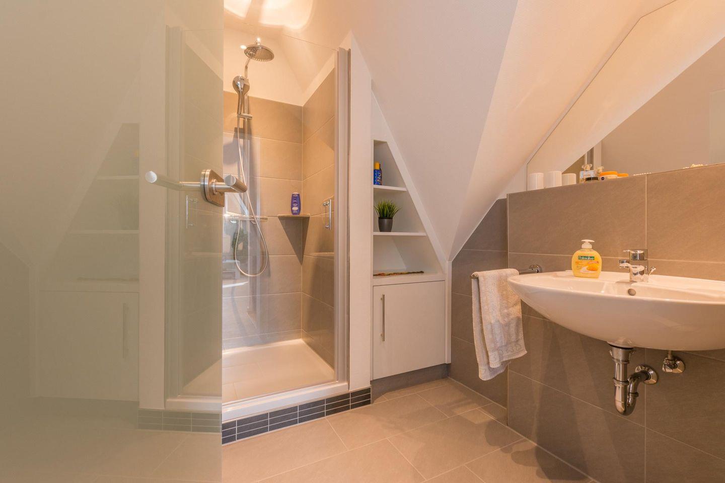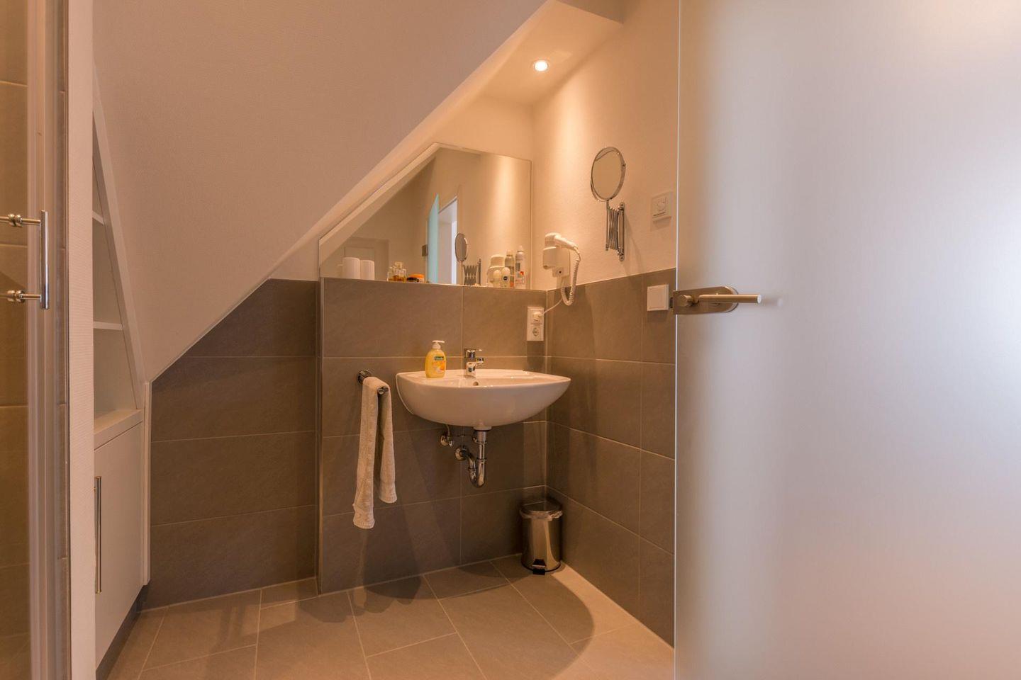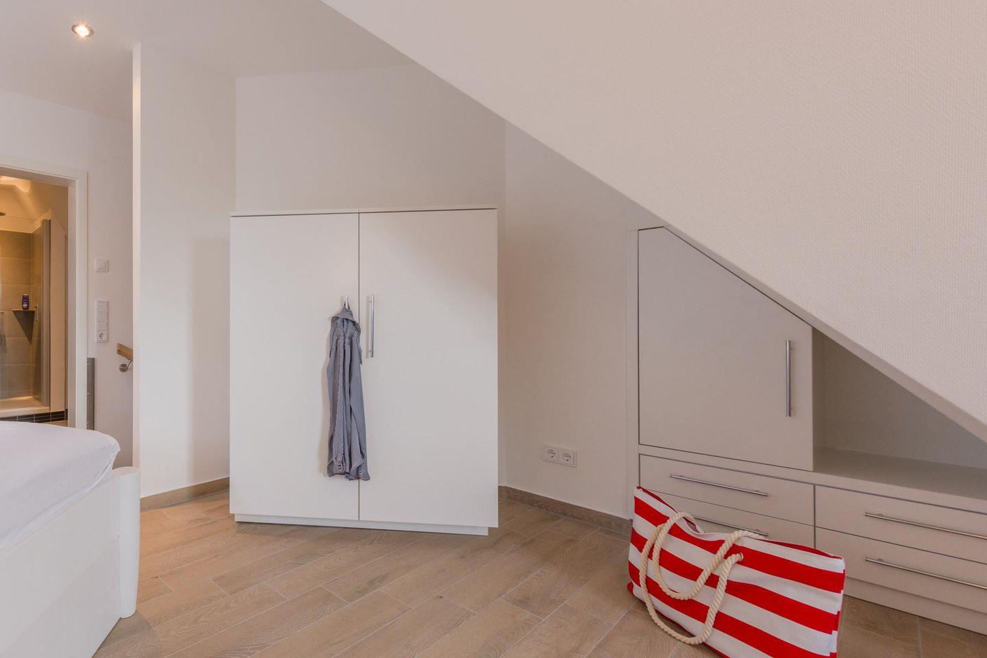 Im Obergeschoss finden Sie das gemütliche Schlafzimmer mit Doppelbett und TV und einer weiteren Schlafcouch als Aufbettung und Badezimmer mit Dusche/WC.