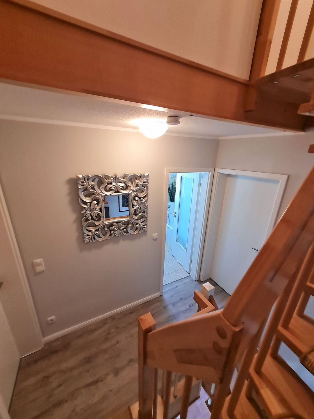 Im Obergeschoss befindet sich ein Schlafzimmer mit Doppelbett 1,80 x 2,00m, sowie ein zweites Schlafzimmer mit 2 Einzelbetten 0,90 x 2,00m.