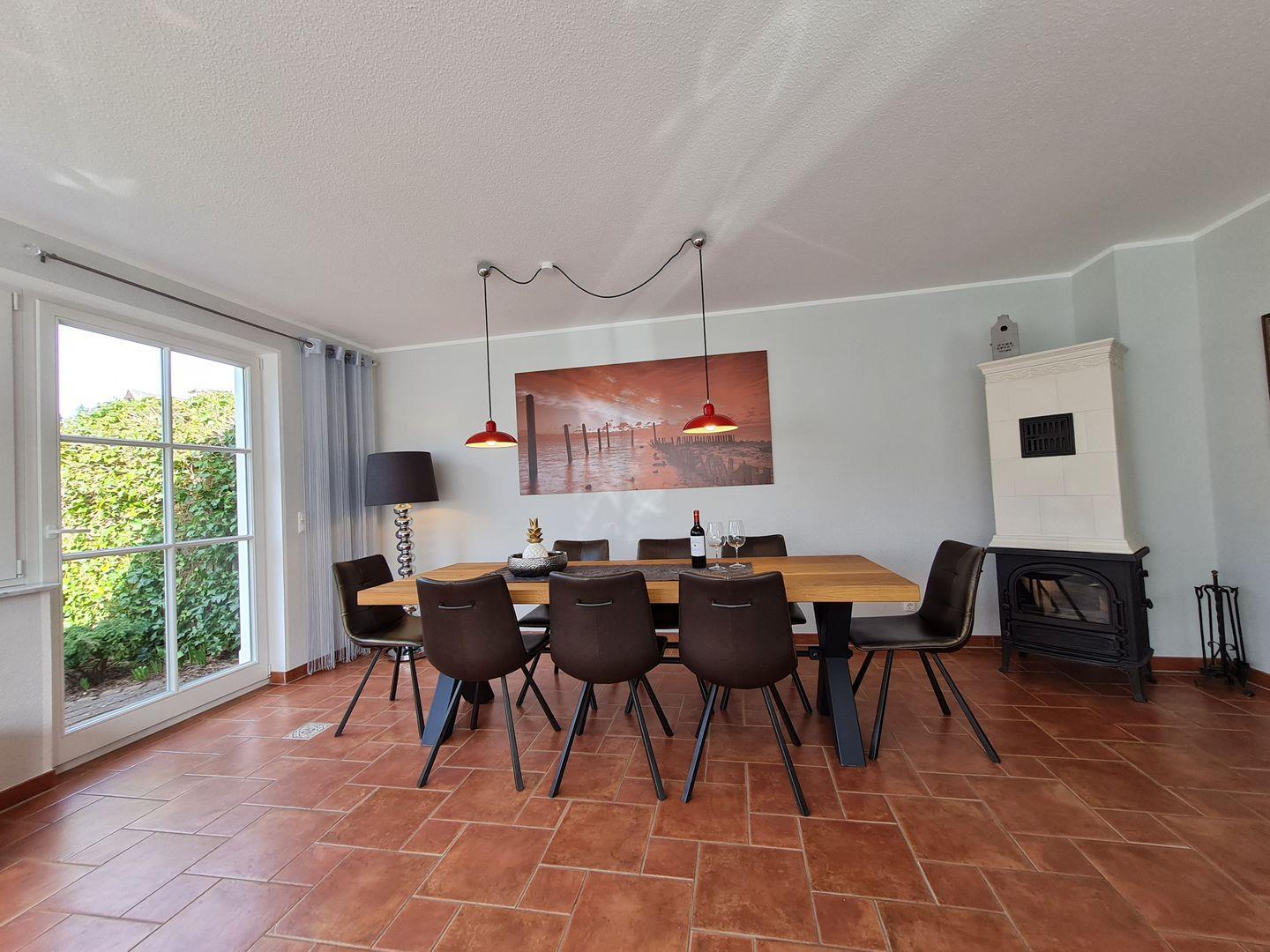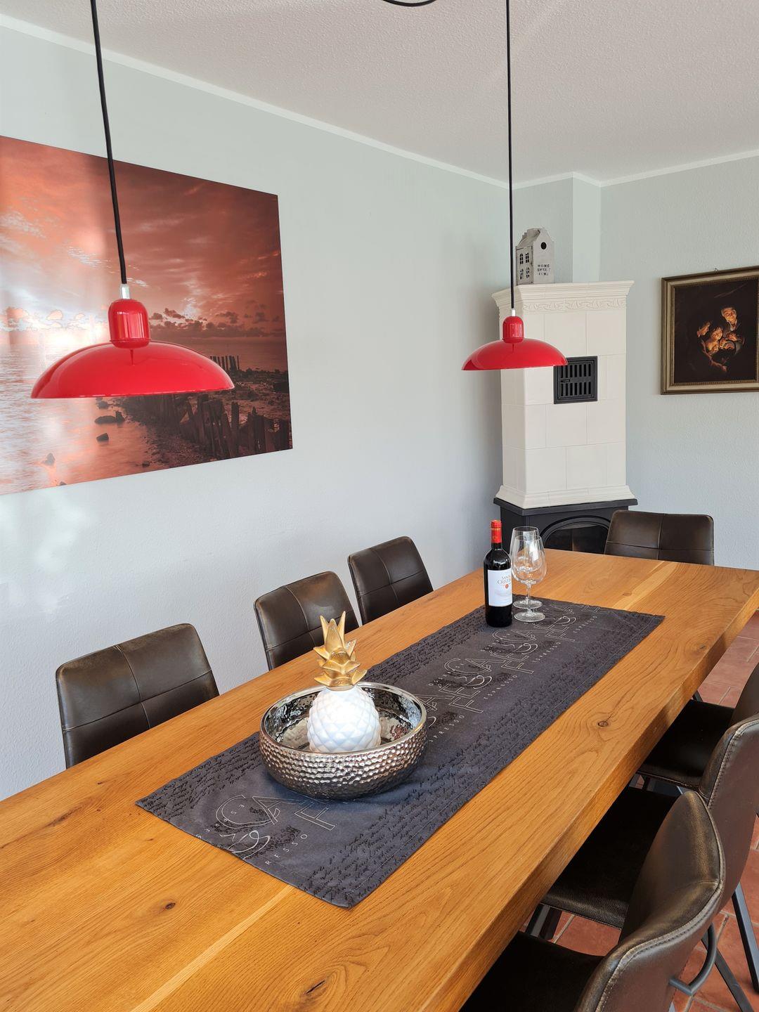Ein großzügiger Wohnraum mit Wohn-/Essbereich mit Sat-55“ TV und Kaminofen, sowie einer kompletten Einbauküche lässt keine Wünsche offen.