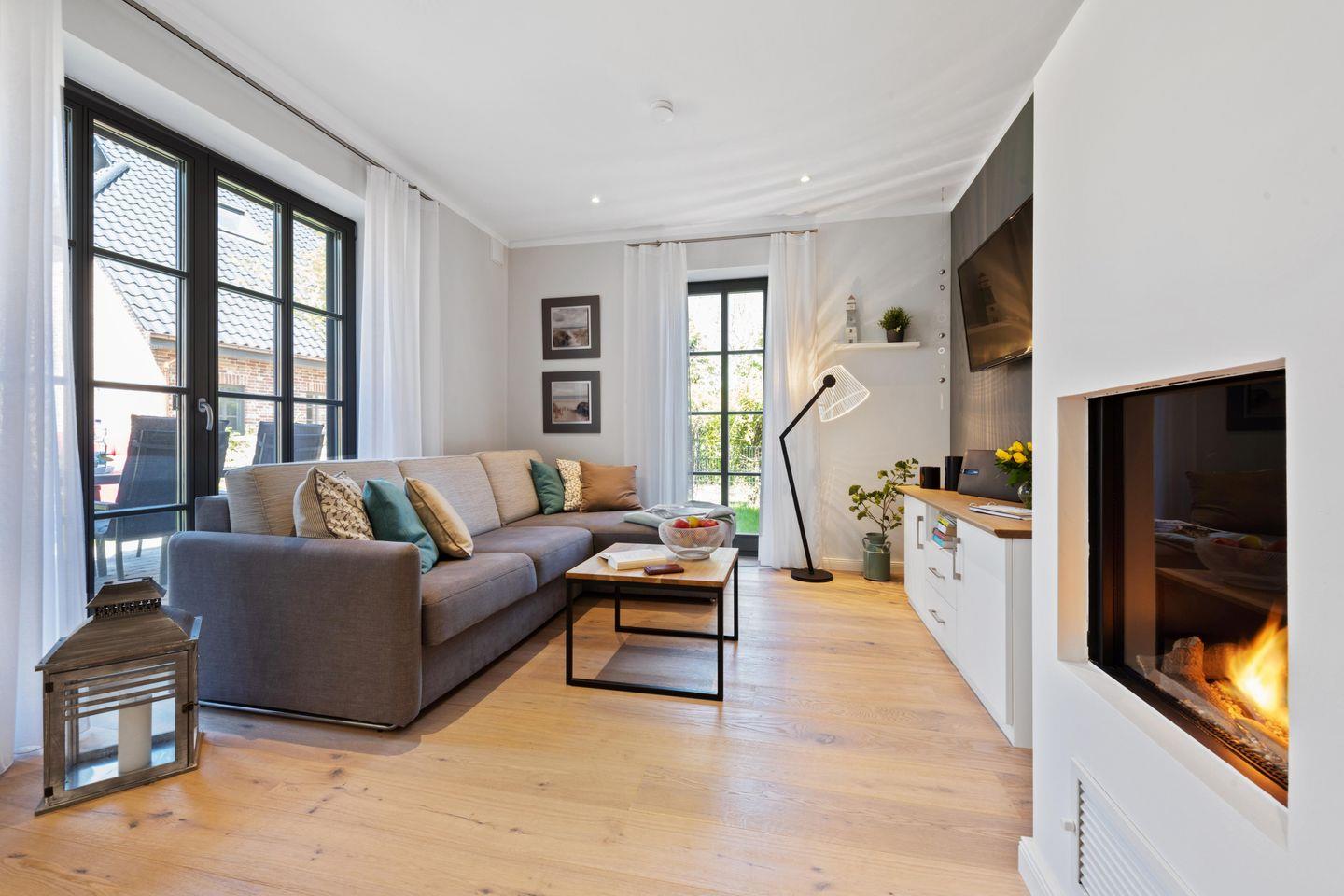 Das Wohnzimmer ist mit kompletter Küchenzeile, LED-Fernseher im Wohn- und im Schlafzimmer, Gaskamin und WLAN ausgestattet.