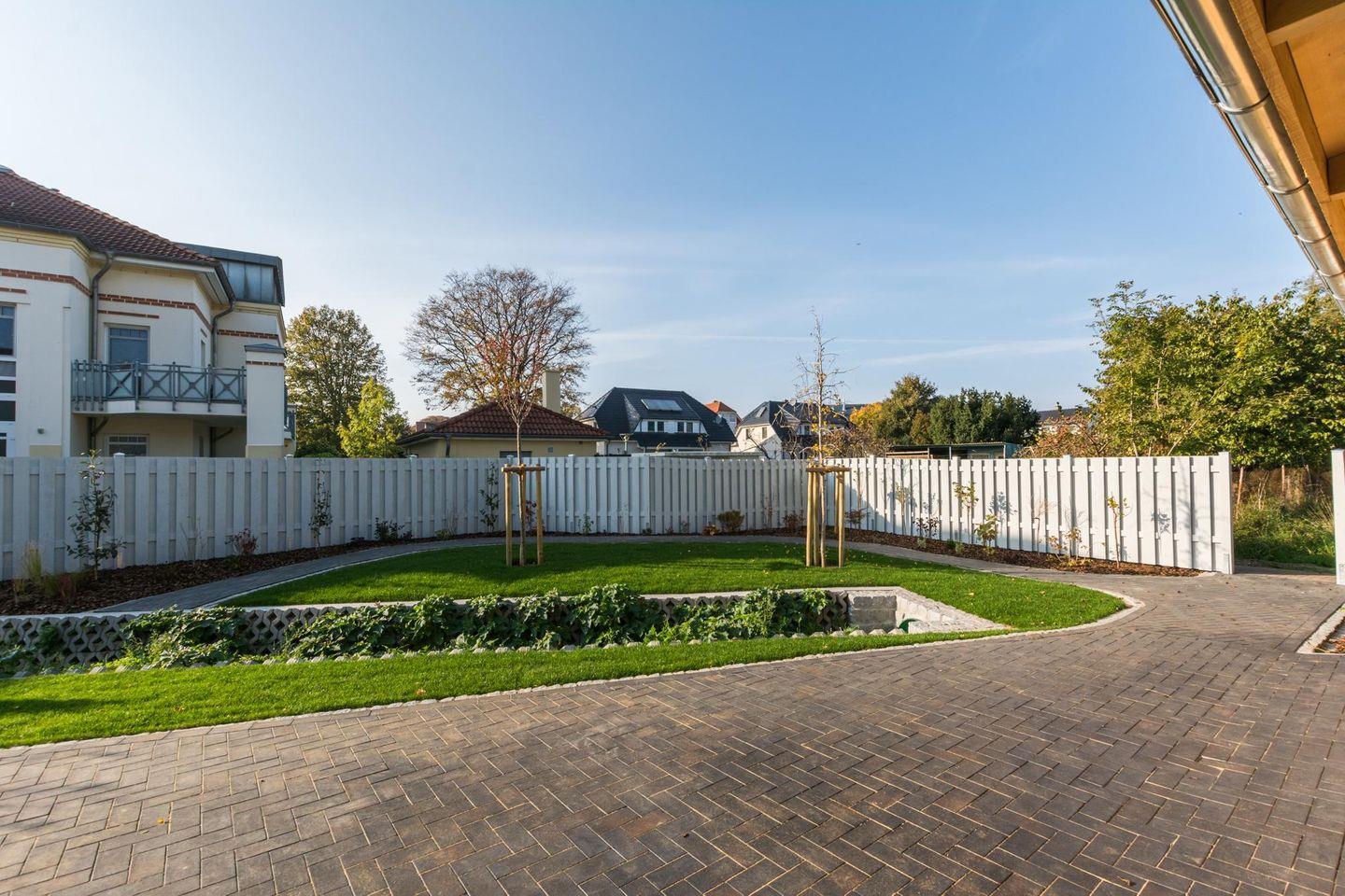 Vom Garten führt ein zweiter Ausgang direkt auf den Likedeeler Weg (Fuß- und Radweg) und von dort direkt in die verkehrsberuhigte Straße Fischmarkt.