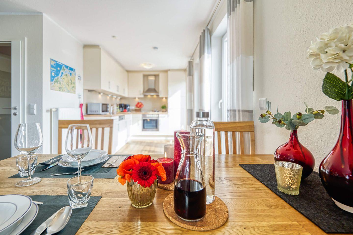 Die Wohnung erstreckt sich über 2 Etagen von einer Fläche von 57 m² und überzeugt durch ein modernes, offenes Raumkonzept. Der helle und einladende Wohnbereich umfasst eine voll ausgestattete Küche. Ausgestattet mit einem Herd, Kühlschrank, Gefrierfach, Mikrowelle und einer Espressomaschine (Nespresso) wird der Morgenkaffee zu einem besonderen Genuss. Hinzu kommt ein wunderschöner, großer Balkon der zum Verweilen einlädt.