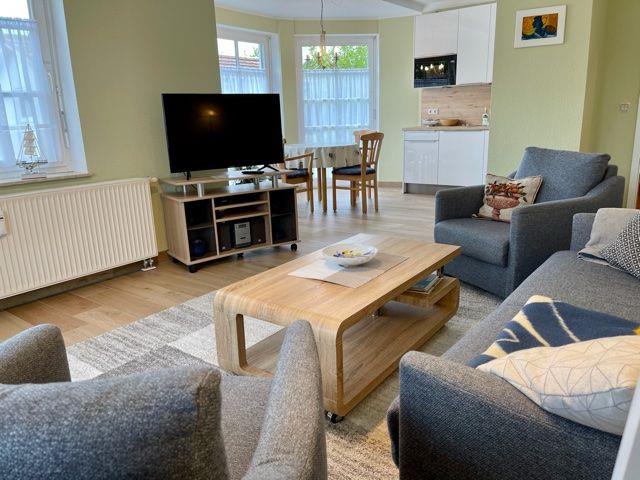 gemütliche Ferienwohnung im wunderschönen Reetdachhaus (Baujahr 1998). ca.55qm² ruhige Lage, Wohnung 2017 renoviert, Strand ca.250m, 1PKW-Stellplatz, Terrasse, Fahrradraum, Wohnzimmer mit kompl. Küchenzeile (Geschirrspüler) Schlafcouch, SAT-TV, DVD-Player, W-LAN inkl. Radio, Schlafzimmer mit Doppelbett, Dusche/WC mit niedrigen Einstieg