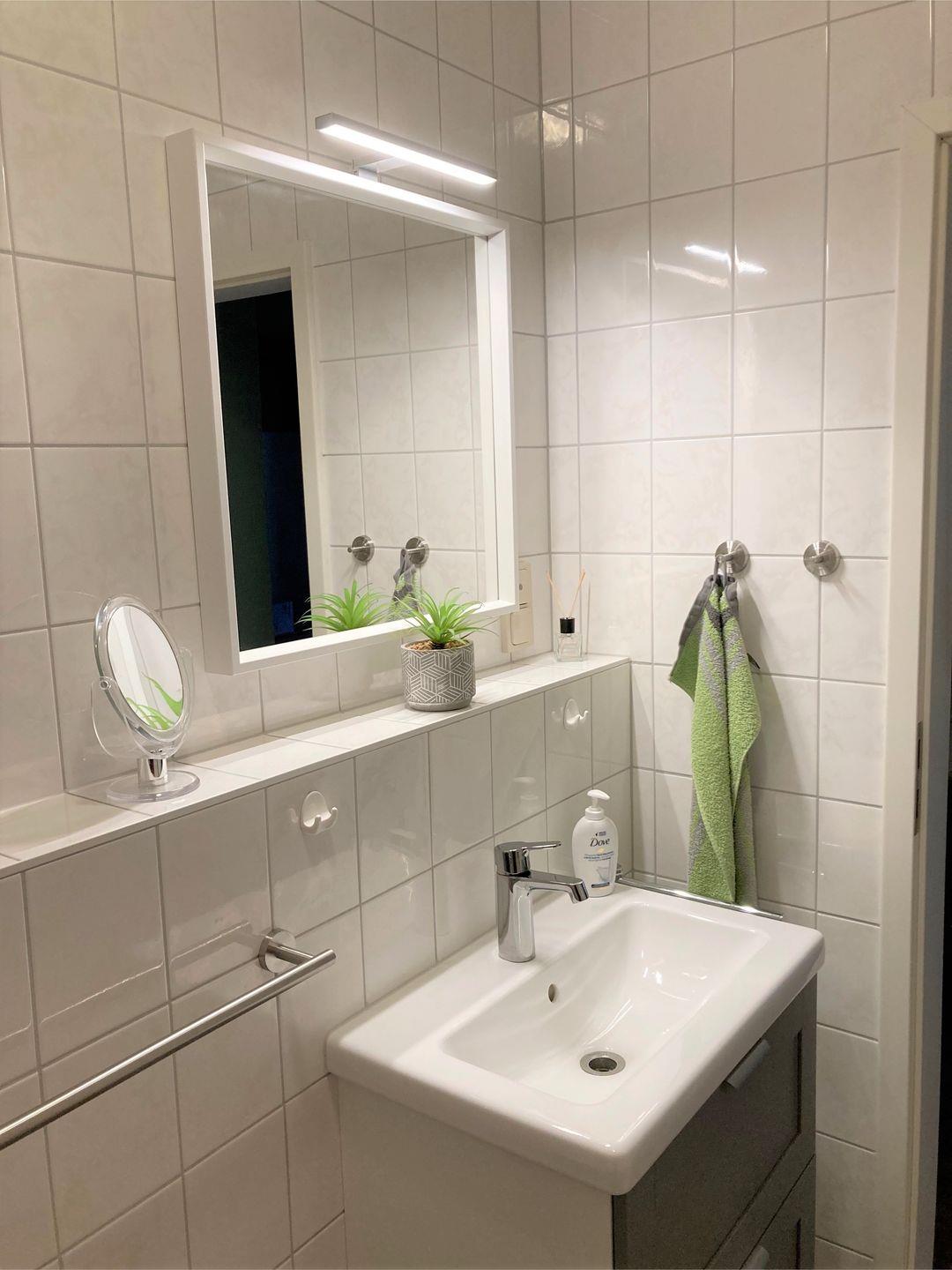 Ein gemütliches Wohnzimmer mit einem geräumigen Esstisch, ein großer Flachbild TV (Smart-TV geeignet) mit DVD-Player, eine kleine hochwertig ausgestattete Küche mit Mikrowelle und Nespresso Maschine, Kühlschrank mit Gefrierfach, Ceranfeld und Einbaubackofen, sowie ein Airfryer, ein helles modernes Badezimmer mit großer Dusche, ein Schlafzimmer mit Doppelbett und einem sehr großen Einbauschrank.