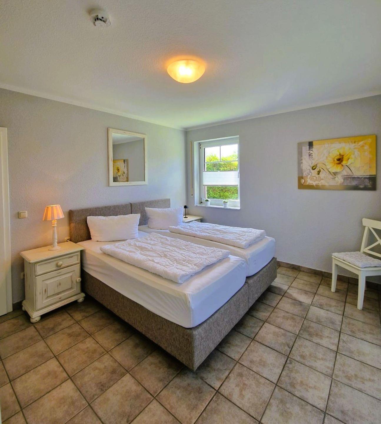 Schlafzimmer mit Ehebett, Dusche/WC,