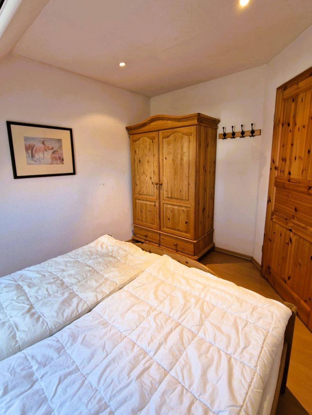 Die Wohnung verfügt über 2 Schlafzimmer. Ein Schlafzimmer verfügt über ein Doppelbett, das andere Schlafzimmer über 2 Einzelbetten.