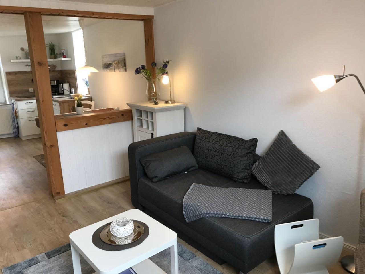 Gemütlich und modern eingerichtete Ferienwohnung in einem reetgedeckten Kapitänshaus für max. 2 Personen, ca. 50qm,