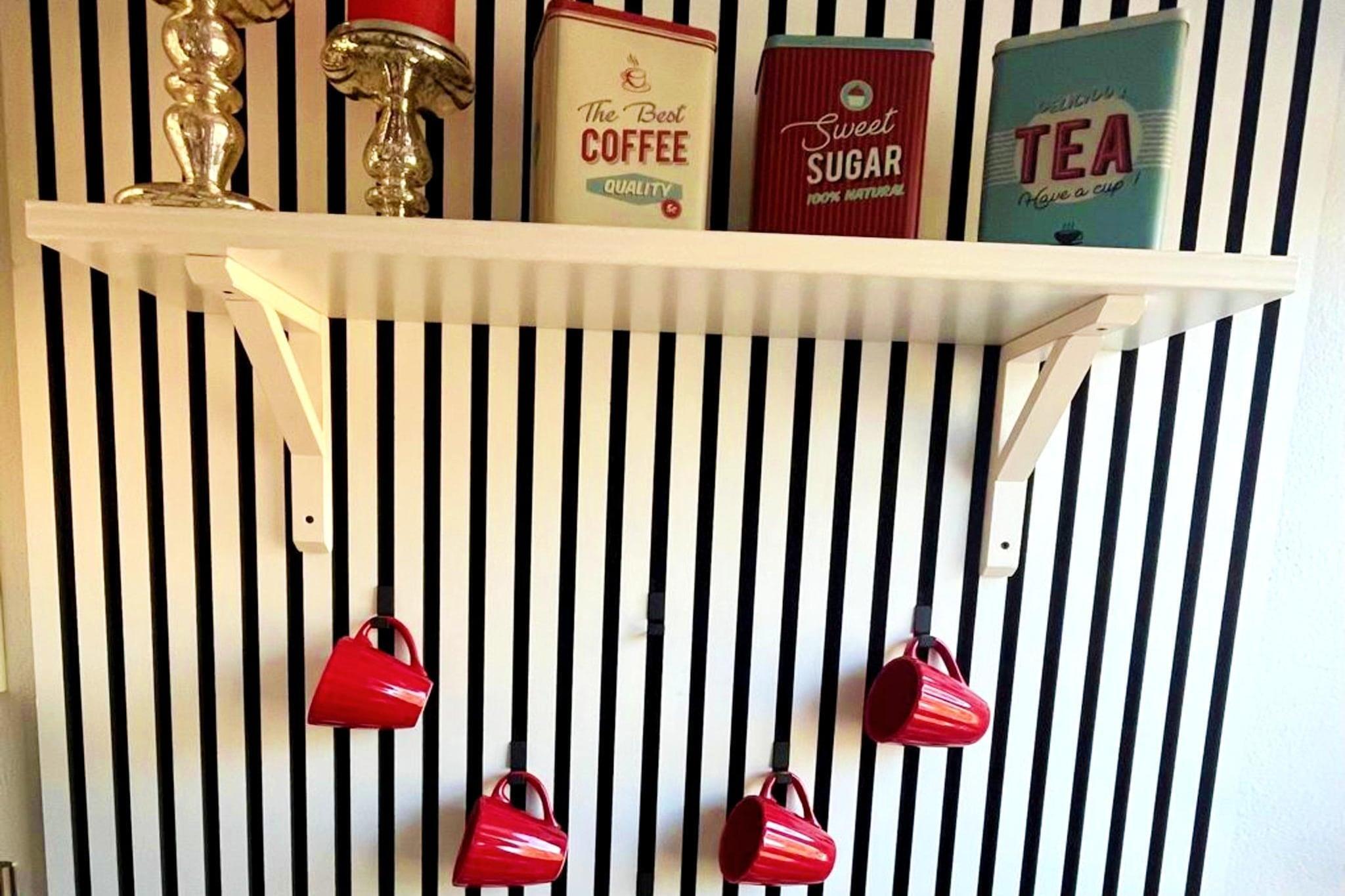 Stue(dobbeltsovesofa, Fjernsyn, pejs), Køkken(spisebord, elkedel, komfur, kaffemaskine, ovn, opvaskemaskine , køle-fryseskab), soveværelse(dobbeltseng), badeværelse(badekar), balkon, parkering,