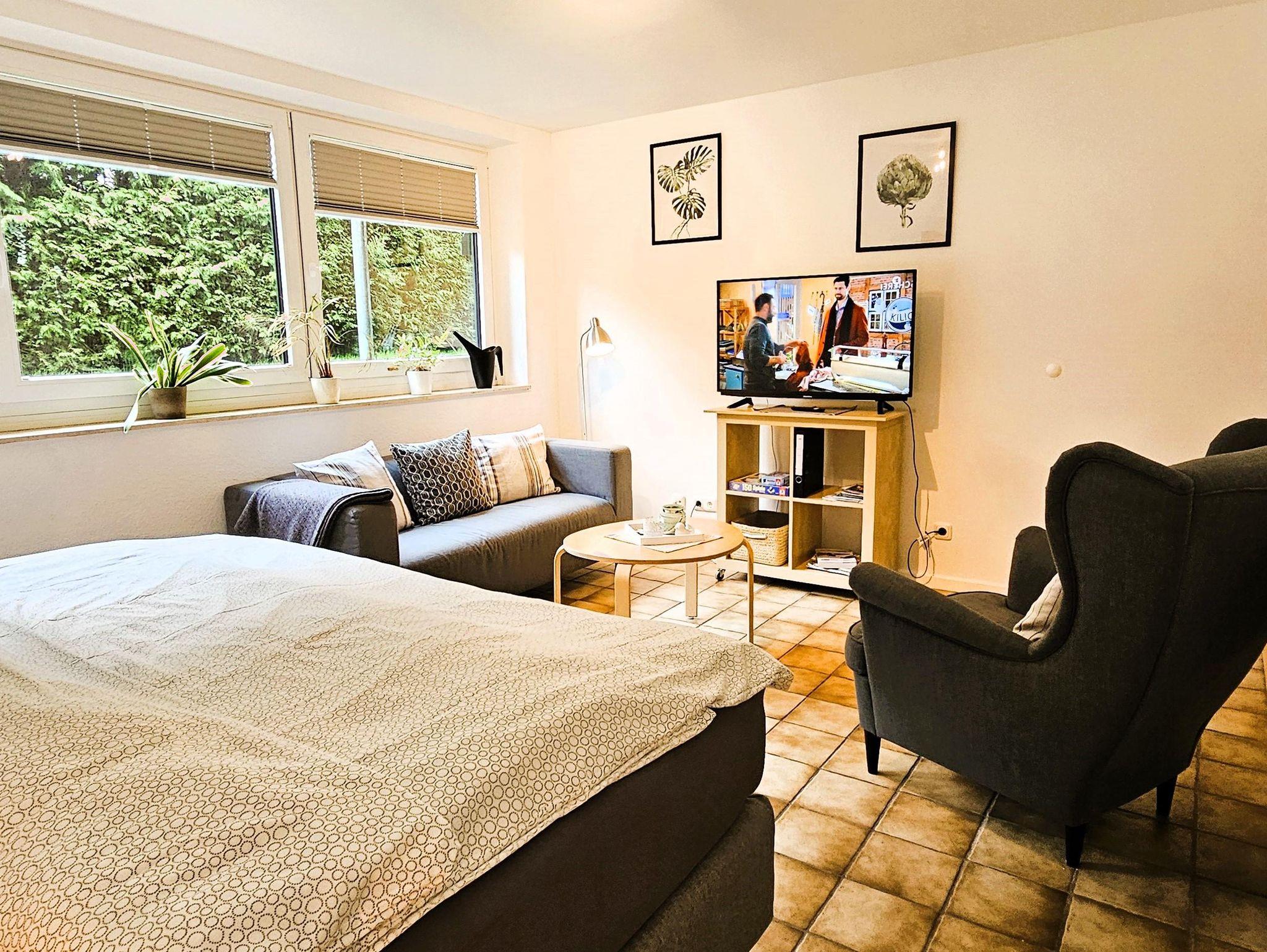 Die gemütliche Ferienwohnung Seevetal befindet sich im Erdgeschoss und ist ideal für Rollstuhlfahrer oder Senioren. Sie verfügt über ein großes modernes Duschbad mit bodengleicher Dusche. Das Wohn-/Schlafzimmer ist mit 2 Einzelbetten, Nachttischen, einer Couch und Sessel sowie einem Fernsehr ausgestattet. Das zweite Schlafzimmer verfügt über 2 Einzelbetten, einen Kleiderschrank und einen Fernseher.