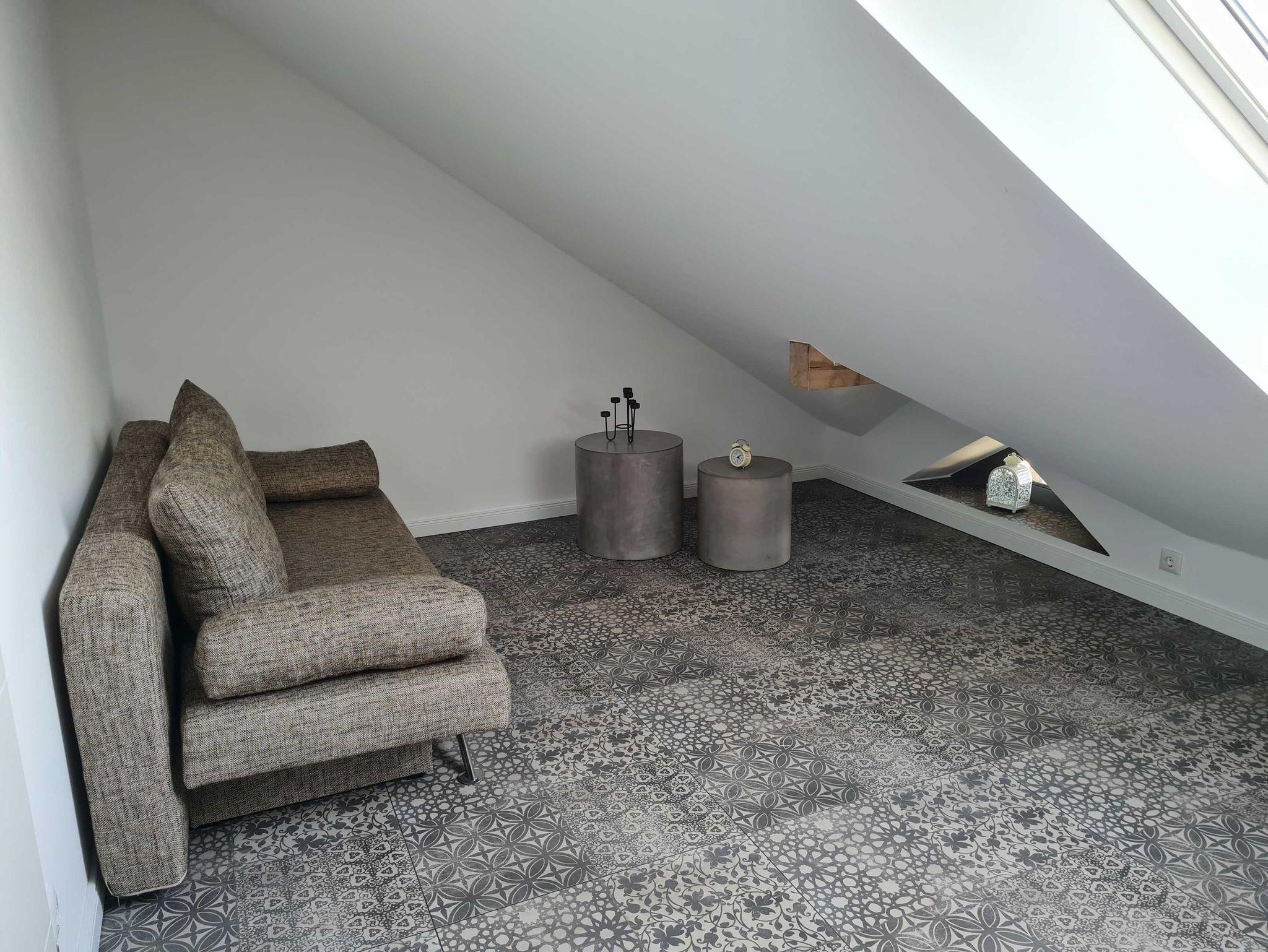 In der oberen Etage finden Sie die Galerie mit Sitzgelegenheiten zum Entspannen sowie das 3. Schlafzimmer mit einem integrierten Duschbad.