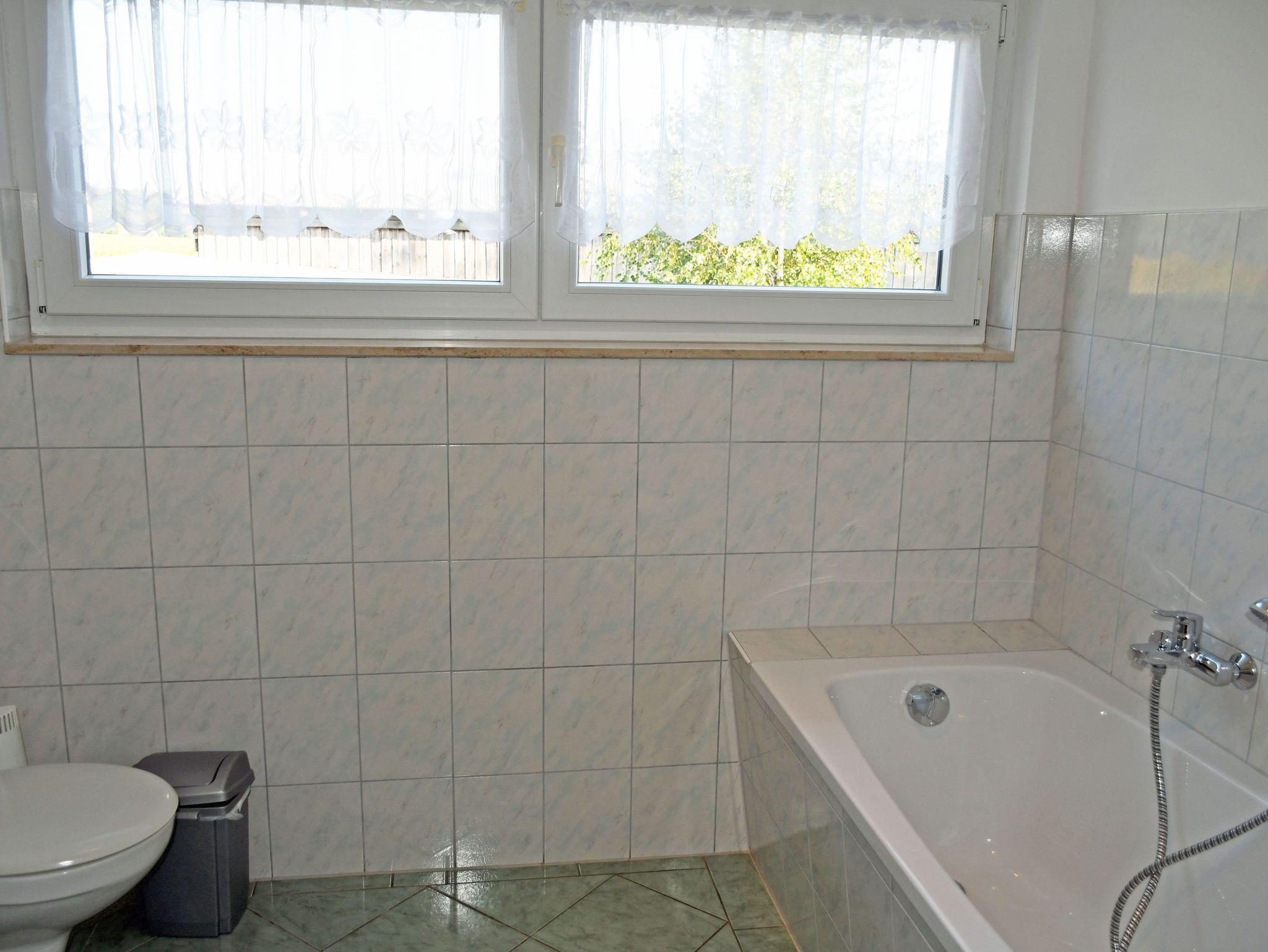 Das im Obergeschoss befindliche zweite Bad ist mit Badewanne, WC und Waschtisch ausgestattet und verfügt ebenfalls über Tageslicht.