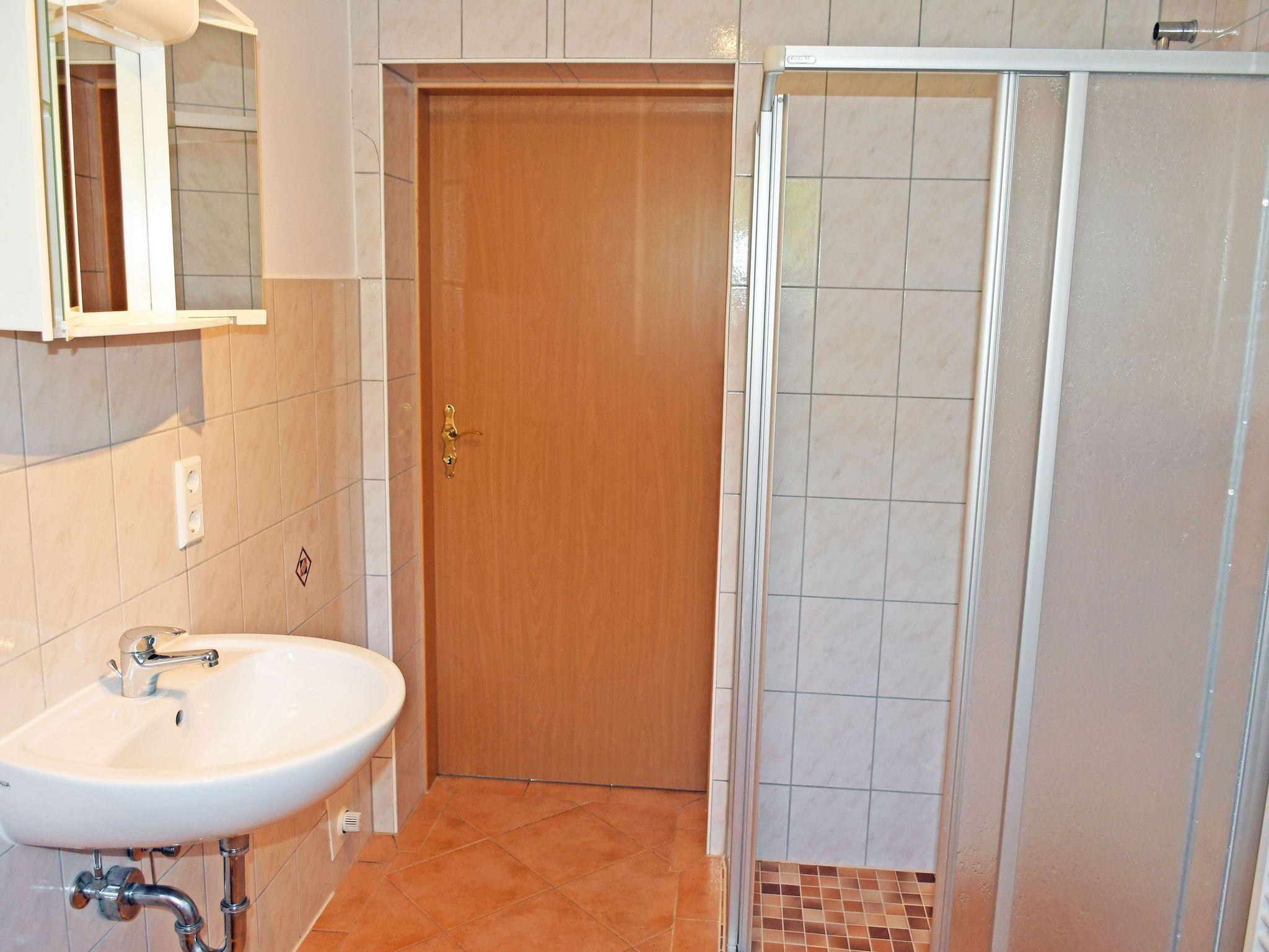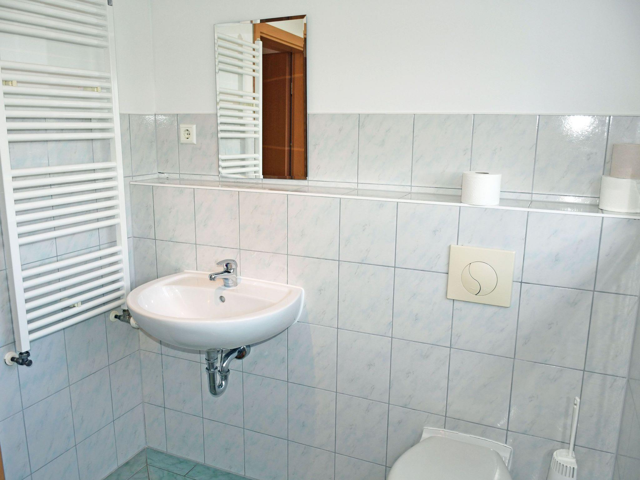Ebenfalls im Erdgeschoss liegt auch das erste Bad mit Dusche und WC und Tageslicht.