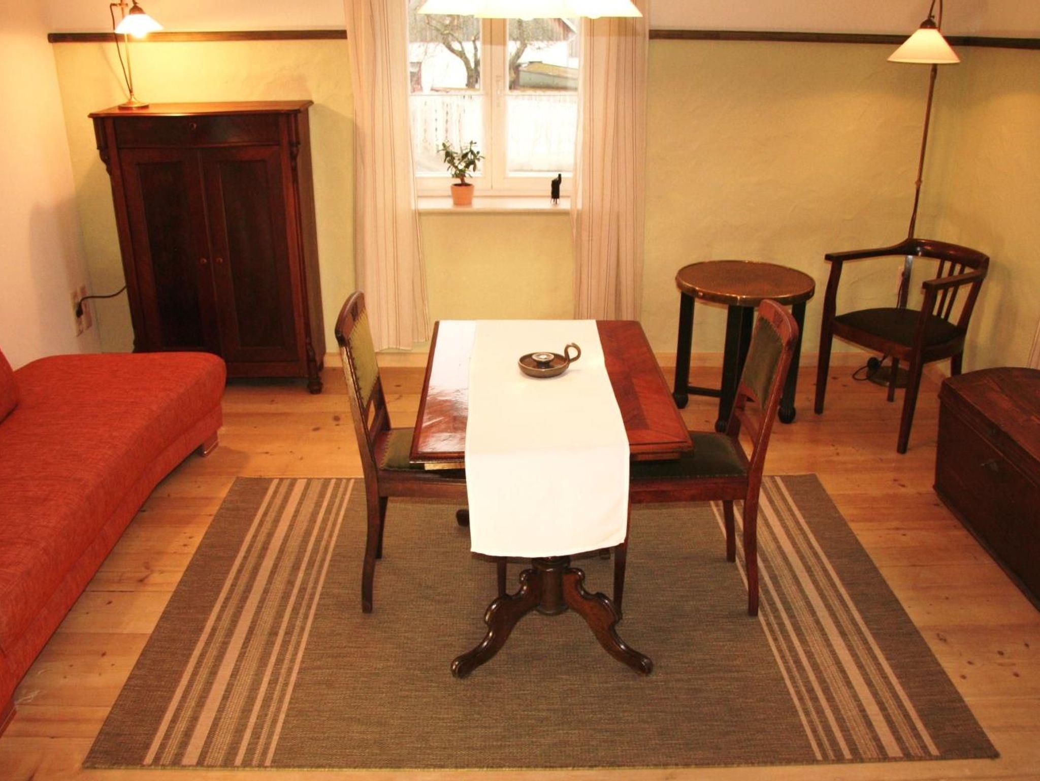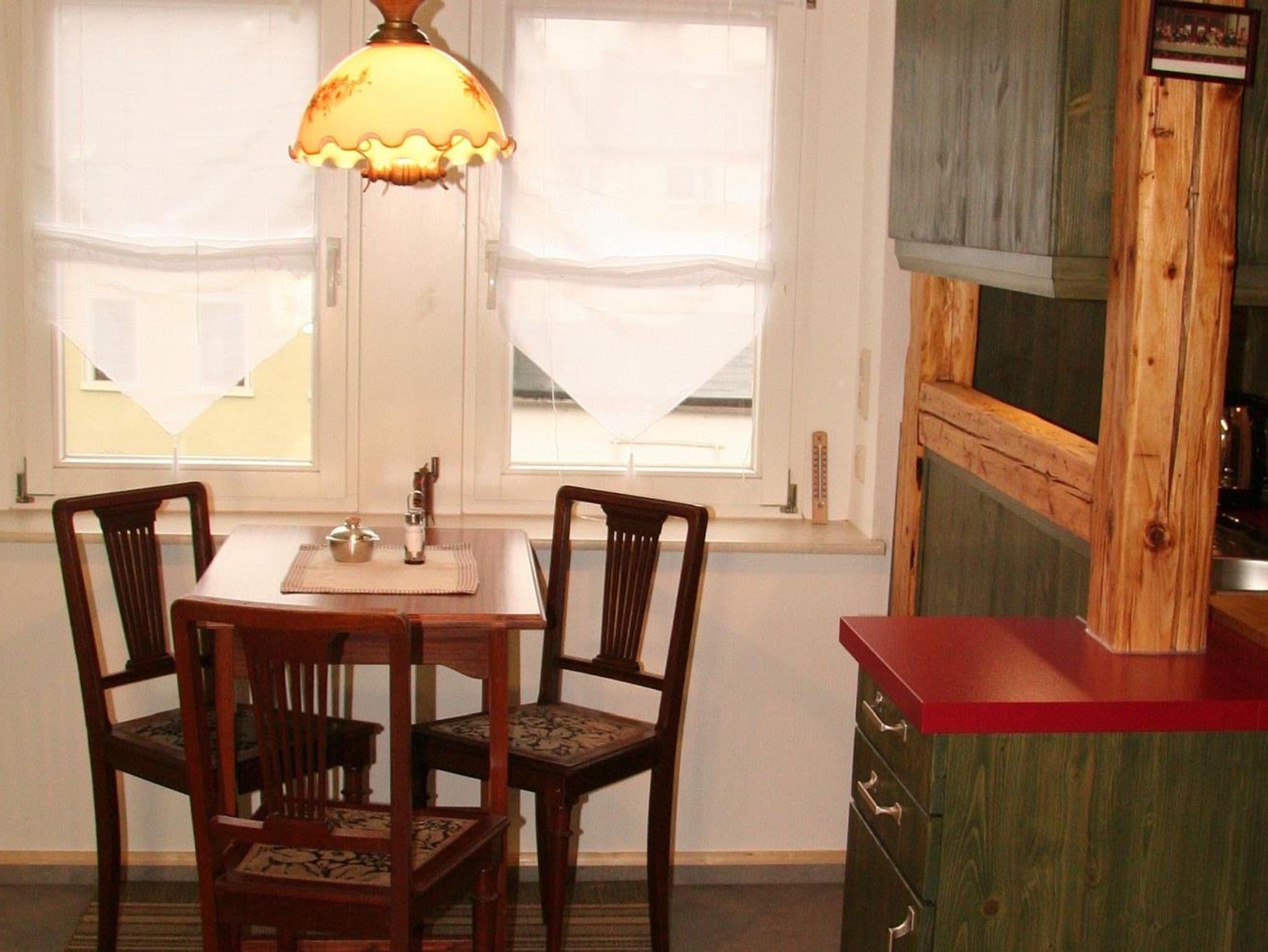Unsere kleine Ferienwohnung hat eine Grundfläche von ca. 50m² und ist für 2 Personen ausgelegt. Bei Bedarf kann sie auch auf 3 Personen im Wohnzimmer auf der Couch (Aufenthaltsraum, wo auch der TV steht) aufgebettet werden. Das Schlafzimmer verfügt über ein gemütliches Doppelbett sowie zwei Kleiderschränke. In der Küche finden Sie eine voll ausgestattete Küchenzeile mit Tisch und 2 Stühlen. Das Wohnzimmer zeigt sich im historischen Ambiente mit gemütlicher Couch und Huss´l. Im Bad erwarten Sie Dusche, WC, Waschbecken und Badewanne. An alle, die auch im Urlaub nicht auf äußere Einflüsse verzichten können: Keine Angst, bei uns sind Sie nicht von der Außenwelt abgeschnitten. Auf Anfrage erhalten Sie natürlich einen W-LAN-Internetzugang. Die Wohnung verfügt weiterhin über eine Fußbodenheizung, kann ebenfalls auch gerne mit Holzfeuer beheizt werden.