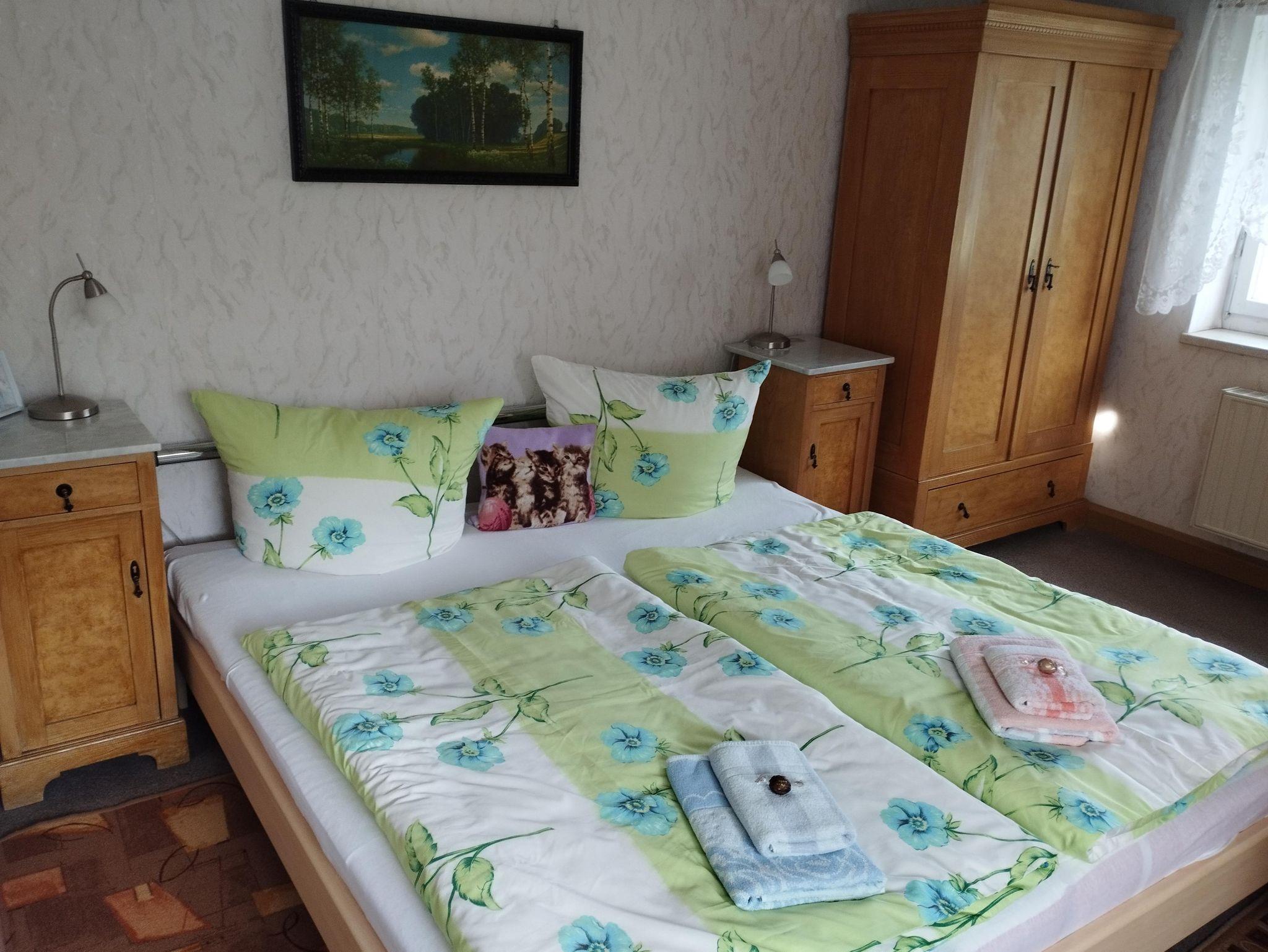 Sie möchten unsere schöne Oberlausitz kennen lernen ? Die Ferienwohnung befindet sich in einem Oberlausitzer Fachwerkhaus, ruhig und sonnig gelegen. Vermietung ist für 1-4 Personen möglich (Aufbettung im Wohnzimmer für 3. und 4. Person). Die 43 m² große Nichtraucherwohnung besteht aus 1 Wohnzimmer mit Schlafcouch, 1 Schlafraum, 1 kleine Küche, DU/ WC, Balkon, Garten und Spielwiese. Begrüßungstrunk, Tageszeitung, Handtücher, Bettwäsche und Endreinigung sind inklusive.