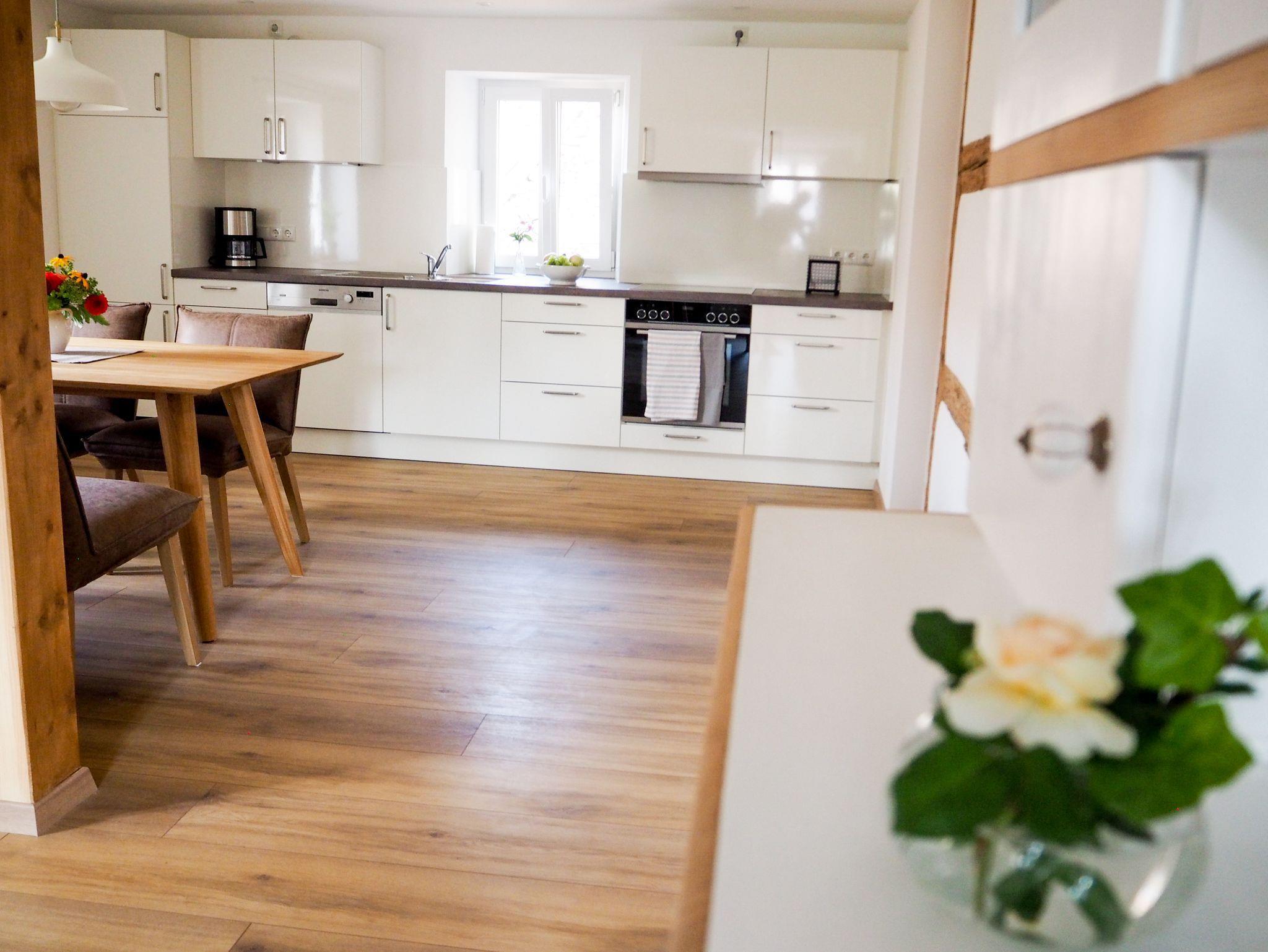 Wohnung Lina befindet sich im Obergeschoß und ist mit einer offenen Küche mit Ess- und Wohnbereich ausgestattet.