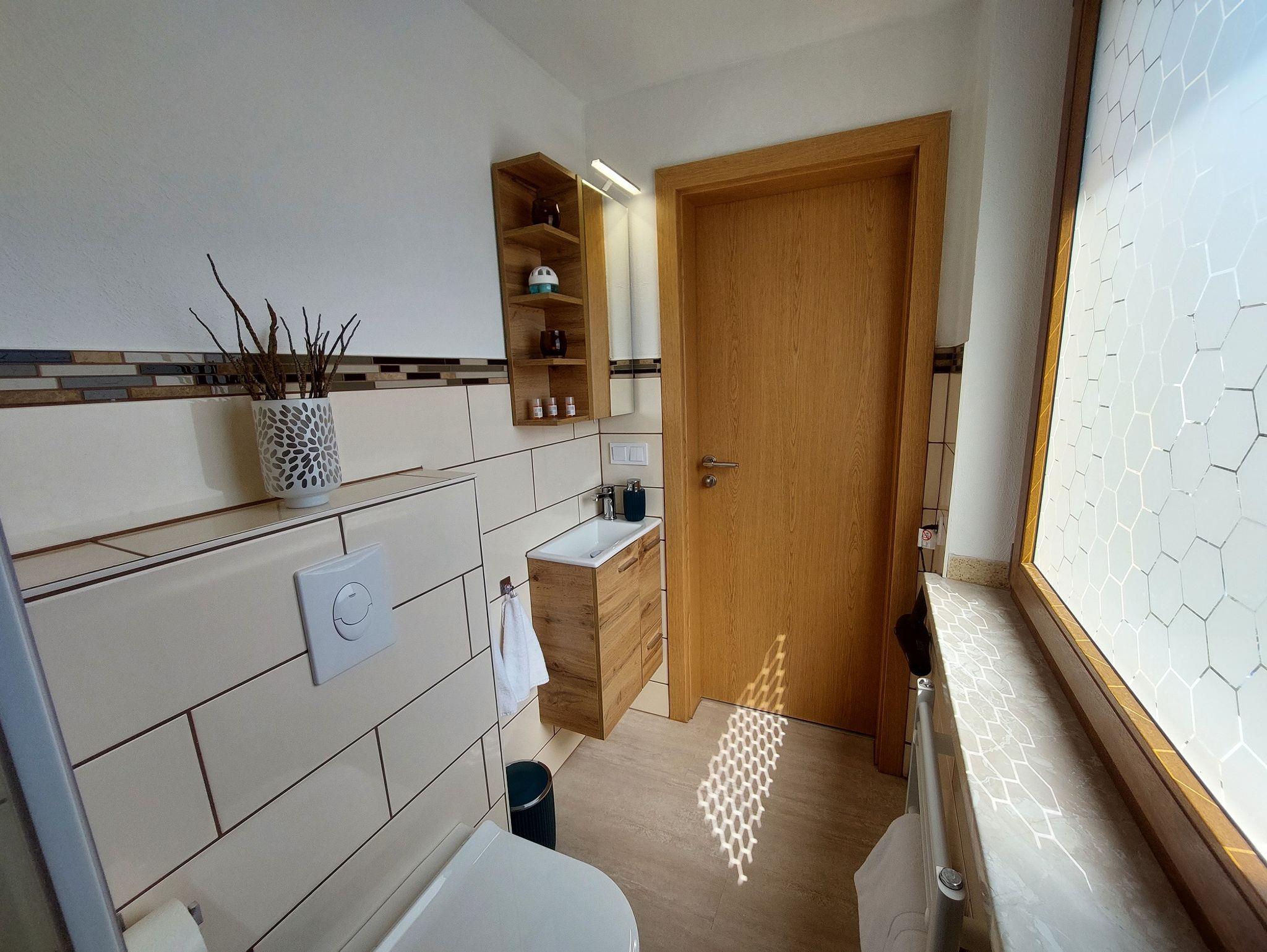 Ein weiteres Gäste-WC steht im Erdgeschoss zur allgemeinen Benutzung zur Verfügung.