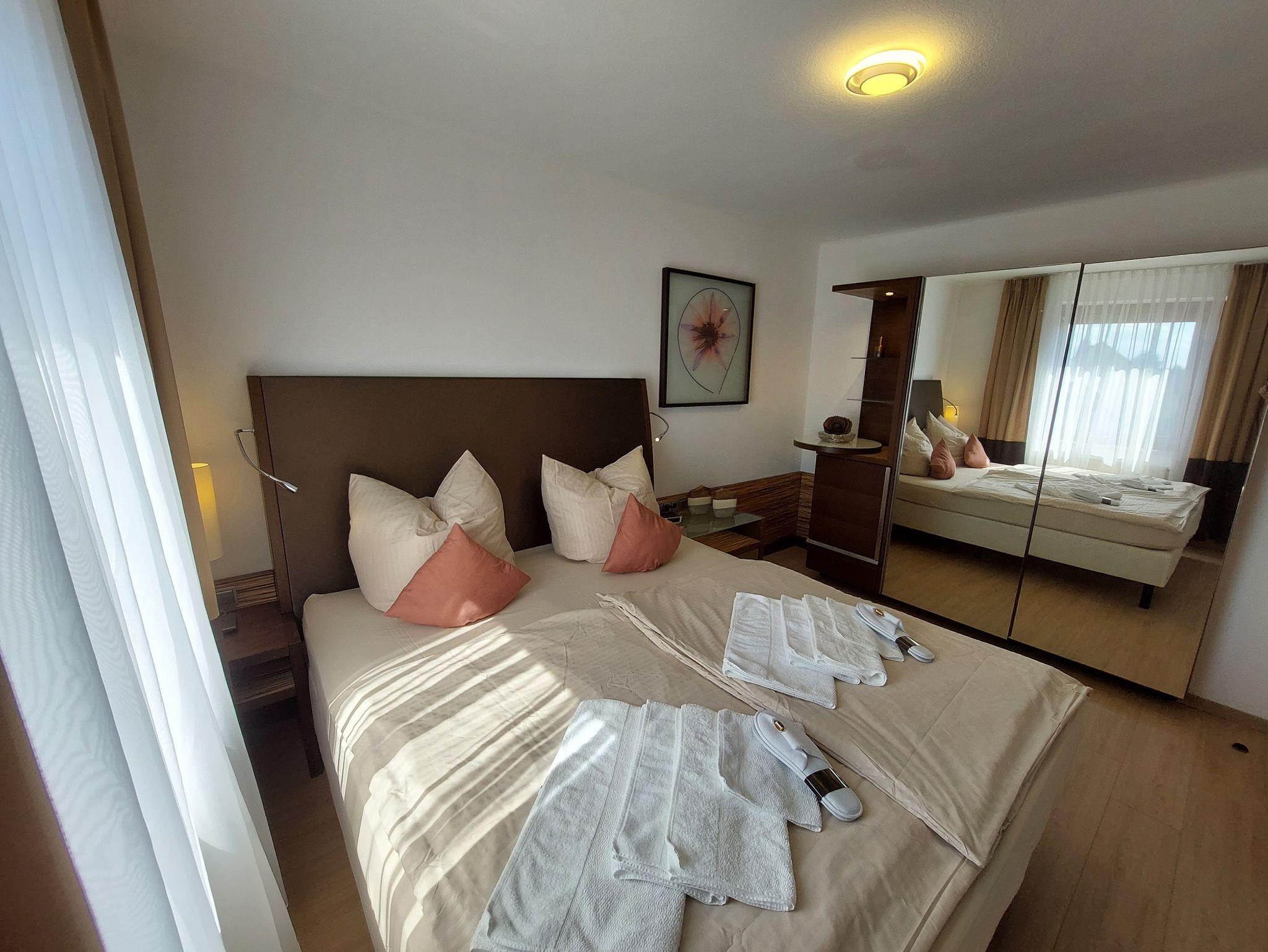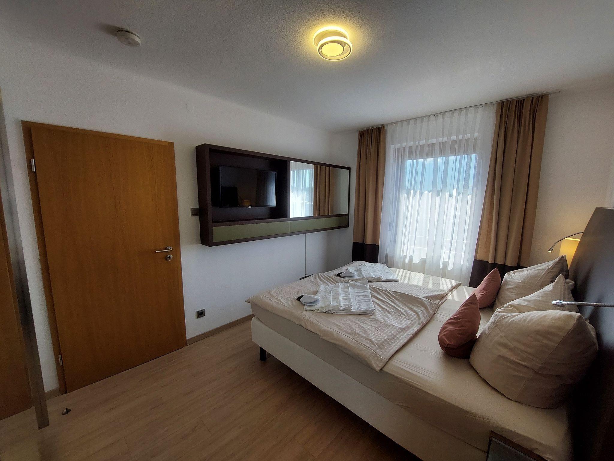 Damit Sie wieder fit und erholt am nächsten Tag durchstarten können, verfügen beide Schlafzimmer über hochwertige Hotel-Boxspringbetten 1x 180x210cm und 2x 90x210cm mit Tonnentaschenfederkernmatratzen für einen erholsamen Schlaf. Alle Zimmer verfügen über min. 32 SAT-TV.