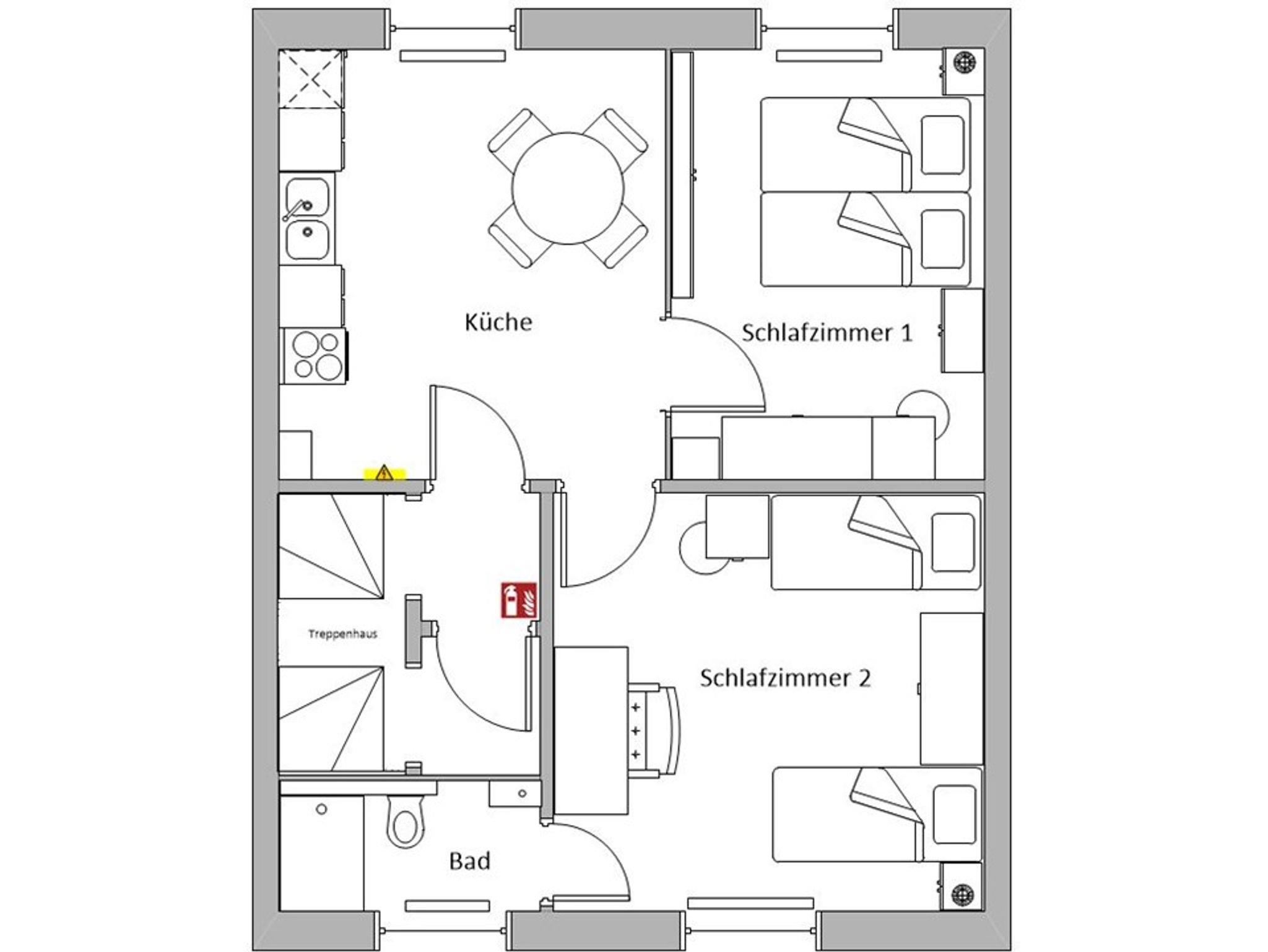2-Zimmer + Küche und Badezimmer mit ca. 45m² für bis zu 4 Personen