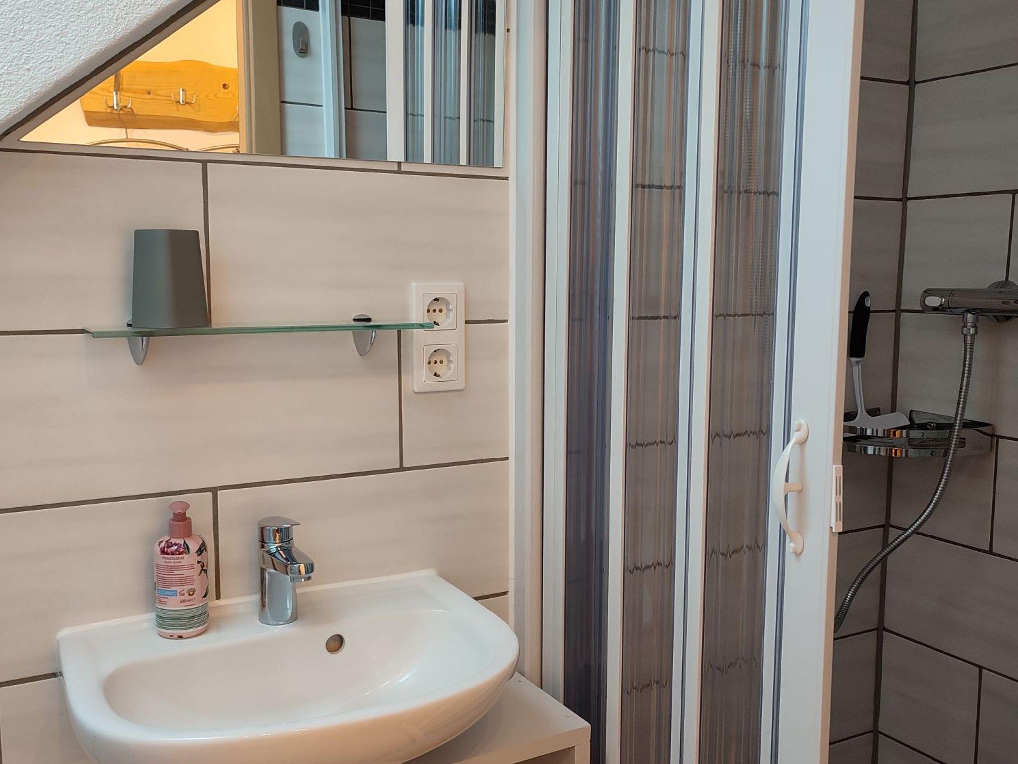 Kleines Duschbad und großzügiger Balkon zum Entspannen auf der Westseite.