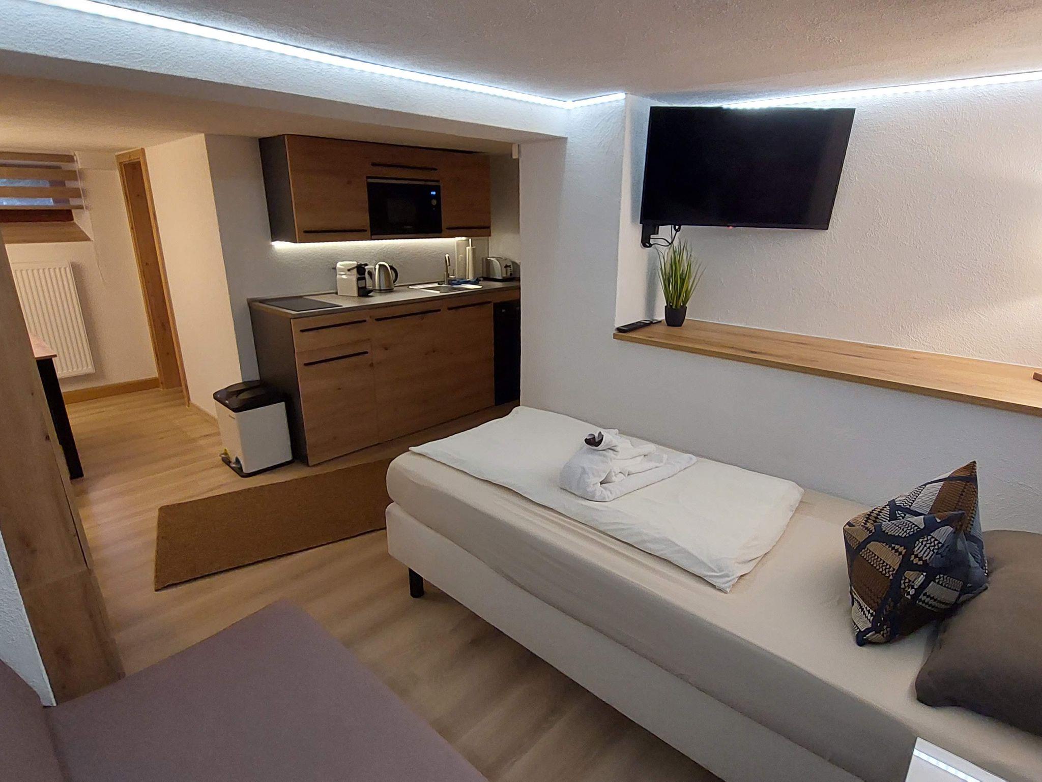 Wohnambiente, Economy-Apartment Souterrain (22qm) mit Küche, Smart-TV und Regendusche