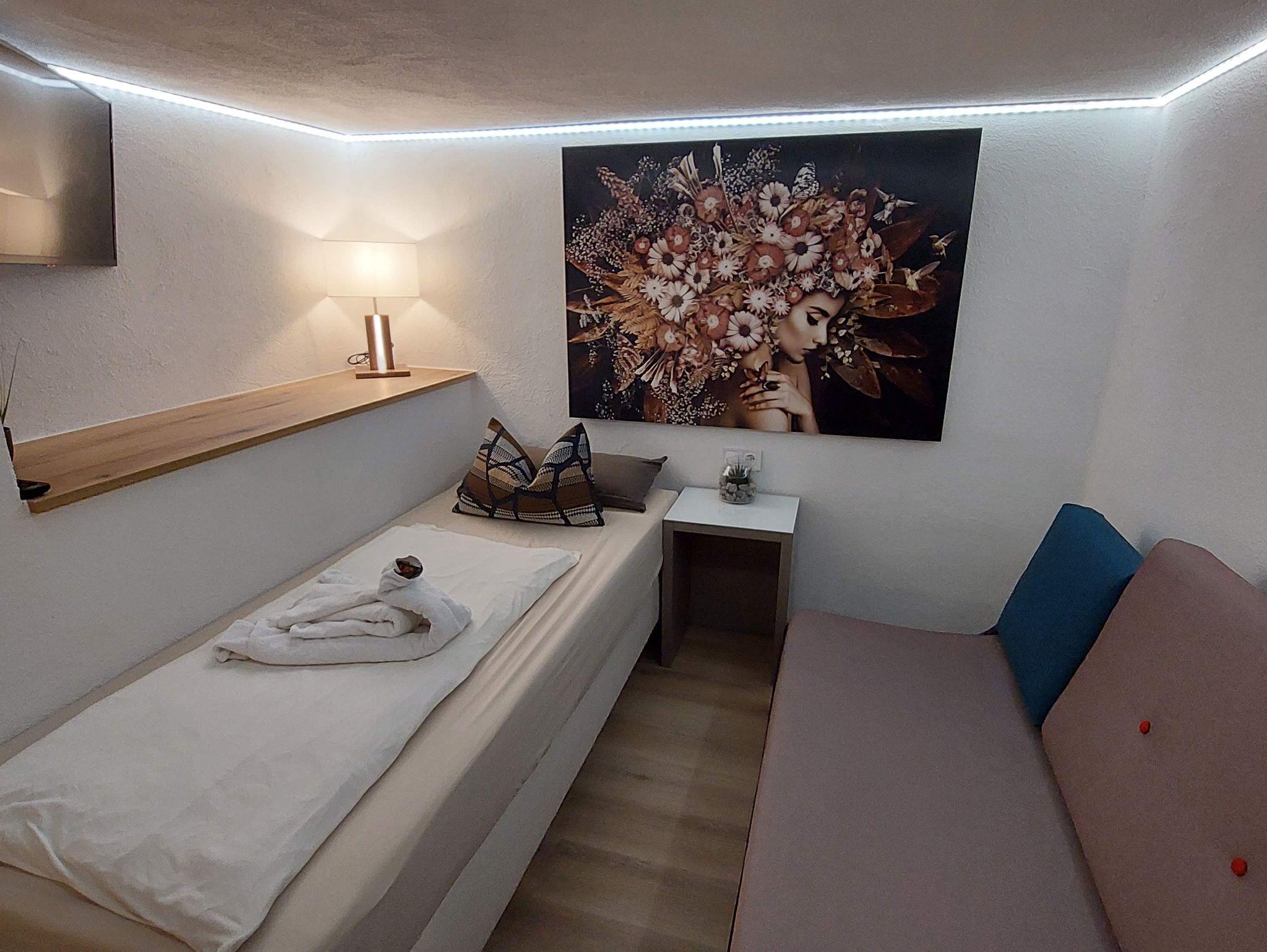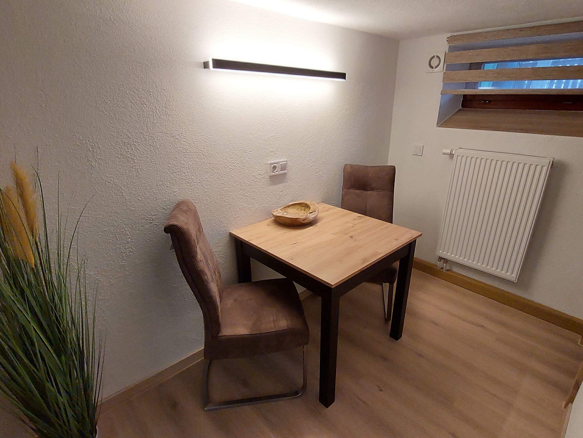 Klein aber Fein ist die Devise bei unserem Souterrain Apartment. Unser nicht weniger liebevoll gestaltetes Apartment im Untergeschoss bietet für kleines Budget alles an Komfort, was man als Monteur, Fachschüler oder aktiv Urlauber der überwiegend unterwegs ist und Abends eine Kochgelegenheit zur Selbstverpflegung, entspanntes Duschen und ein bequemes Bett zum Energietanken für den nächsten Tag benötigt.