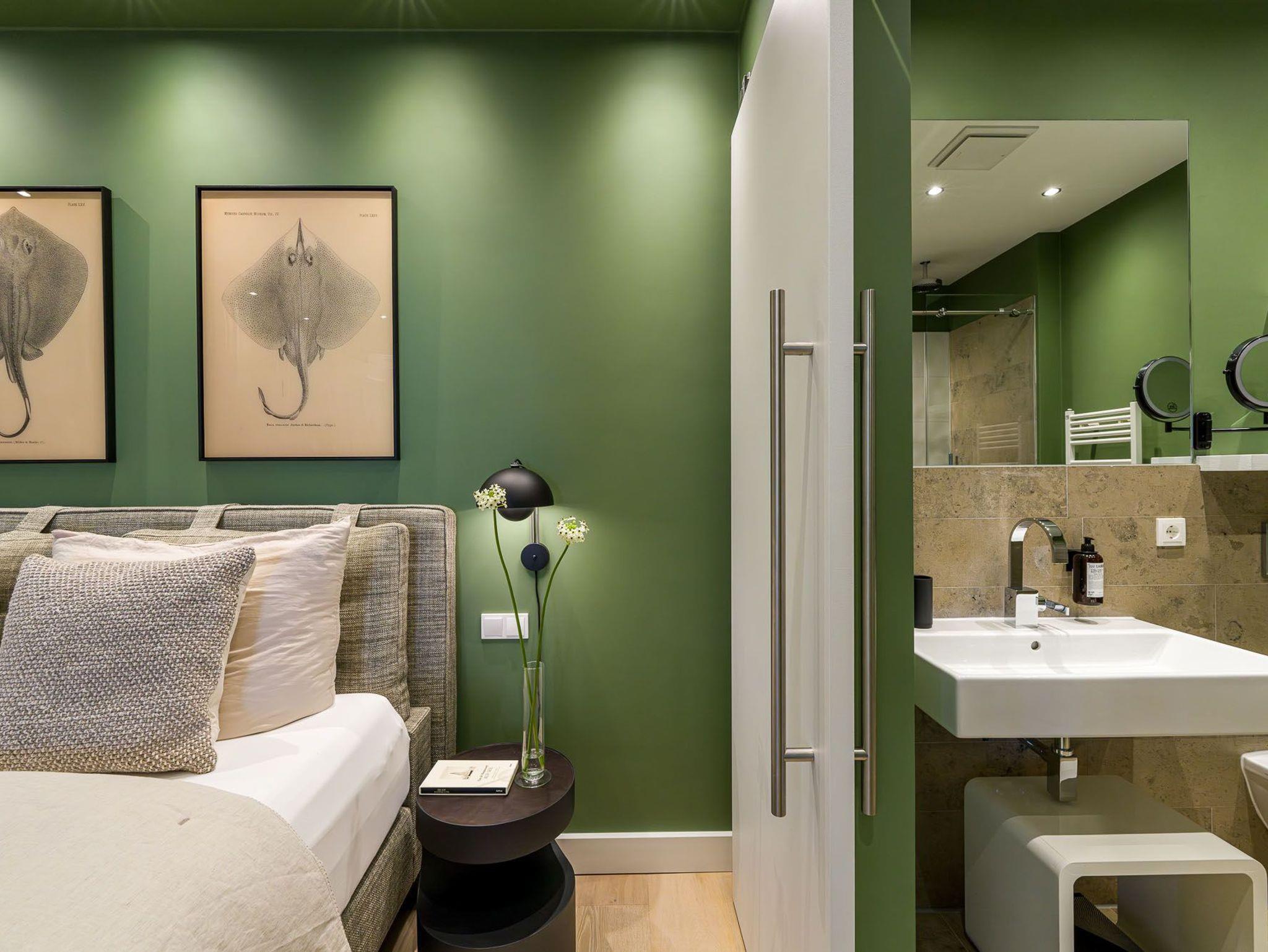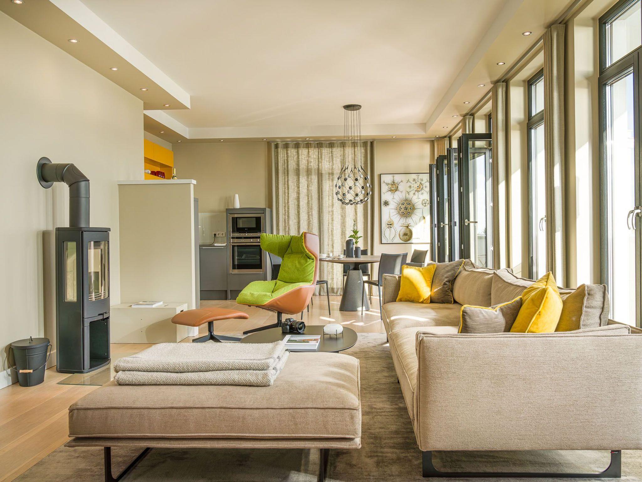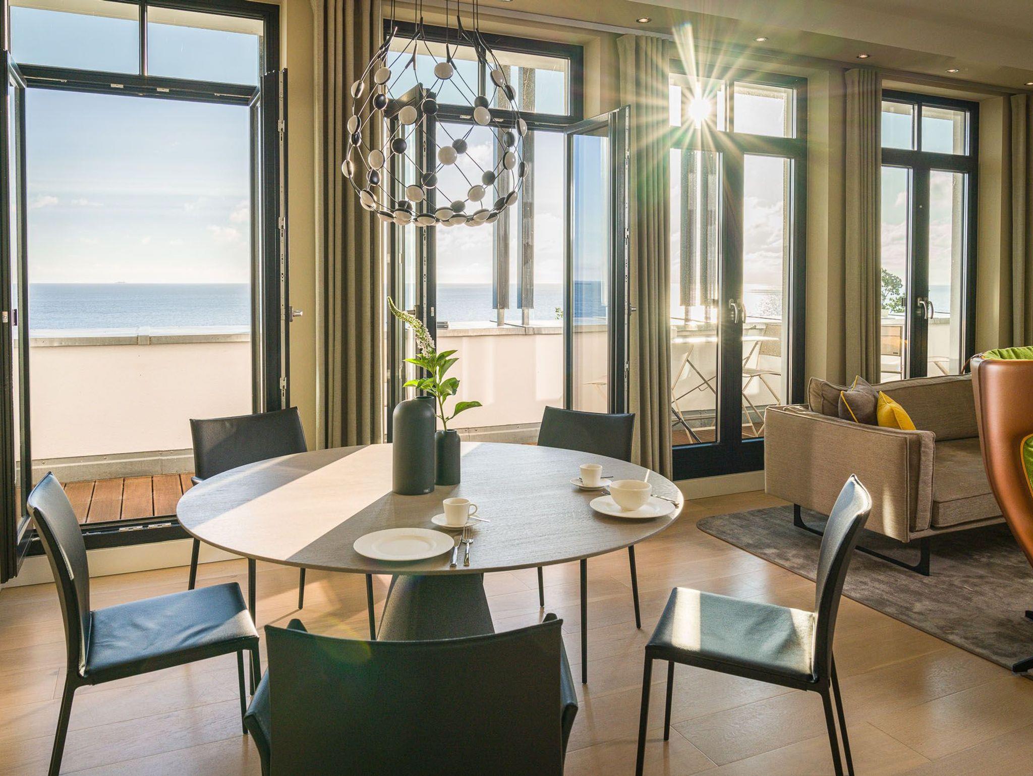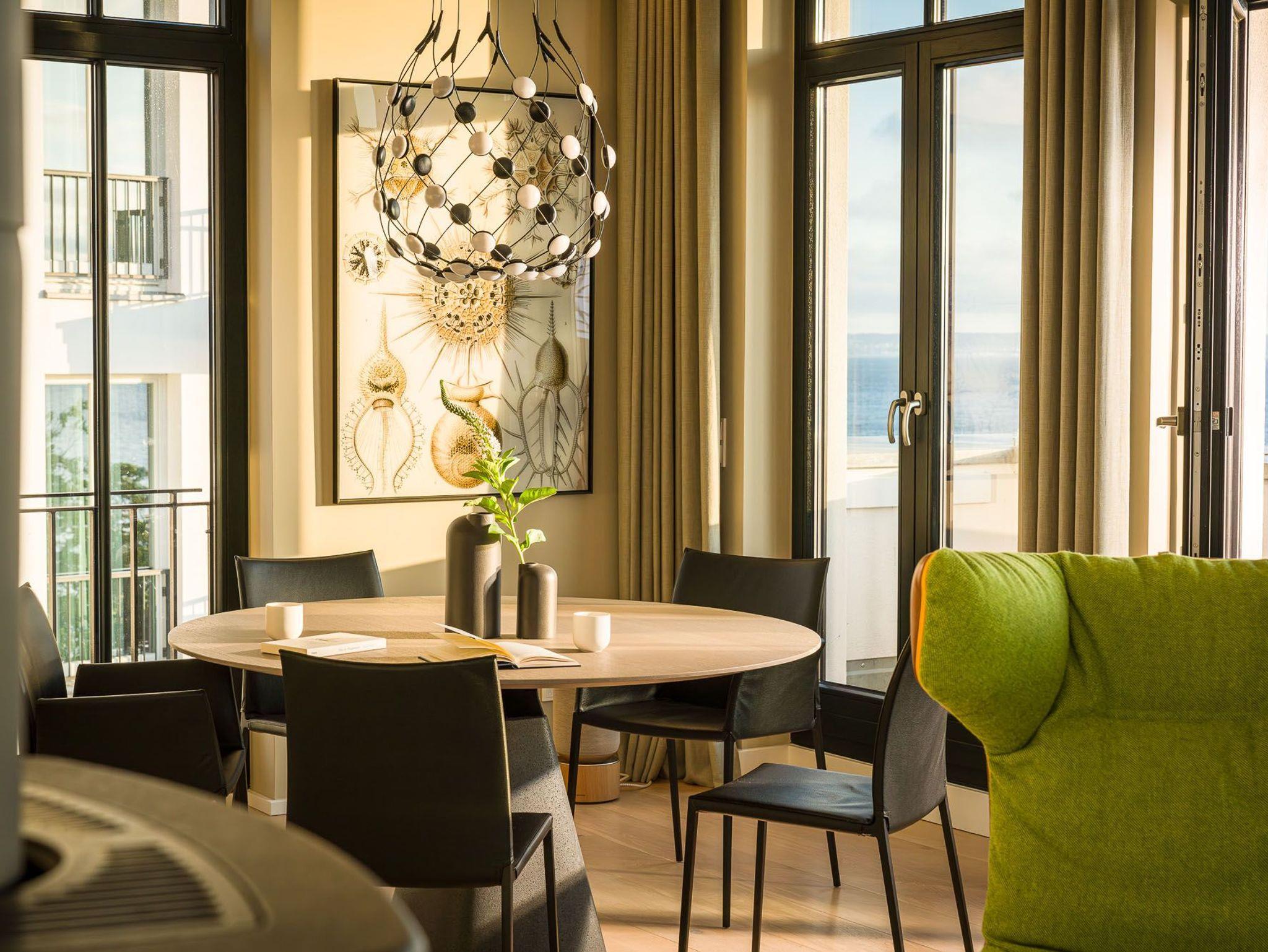 Die hochwertige und perfekt aufeinander abgestimmte Einrichtung mit Marken wie Thonet, Luceplan, Mobimex, Zanotta, JAB, Moroso, Gubi, Villeroy [&] Boch oder IP Design bietet höchsten Komfort in bewährter Qualität.