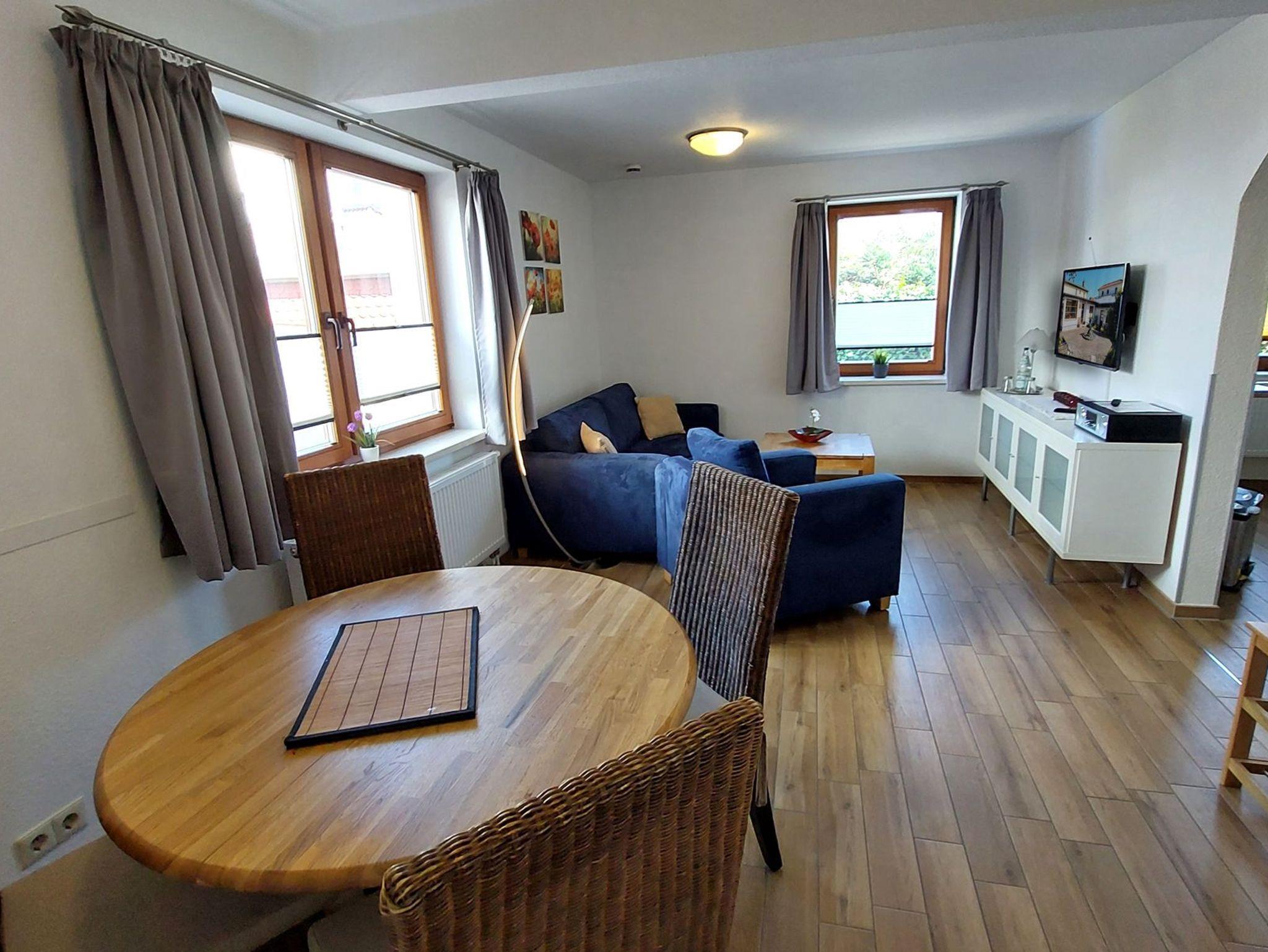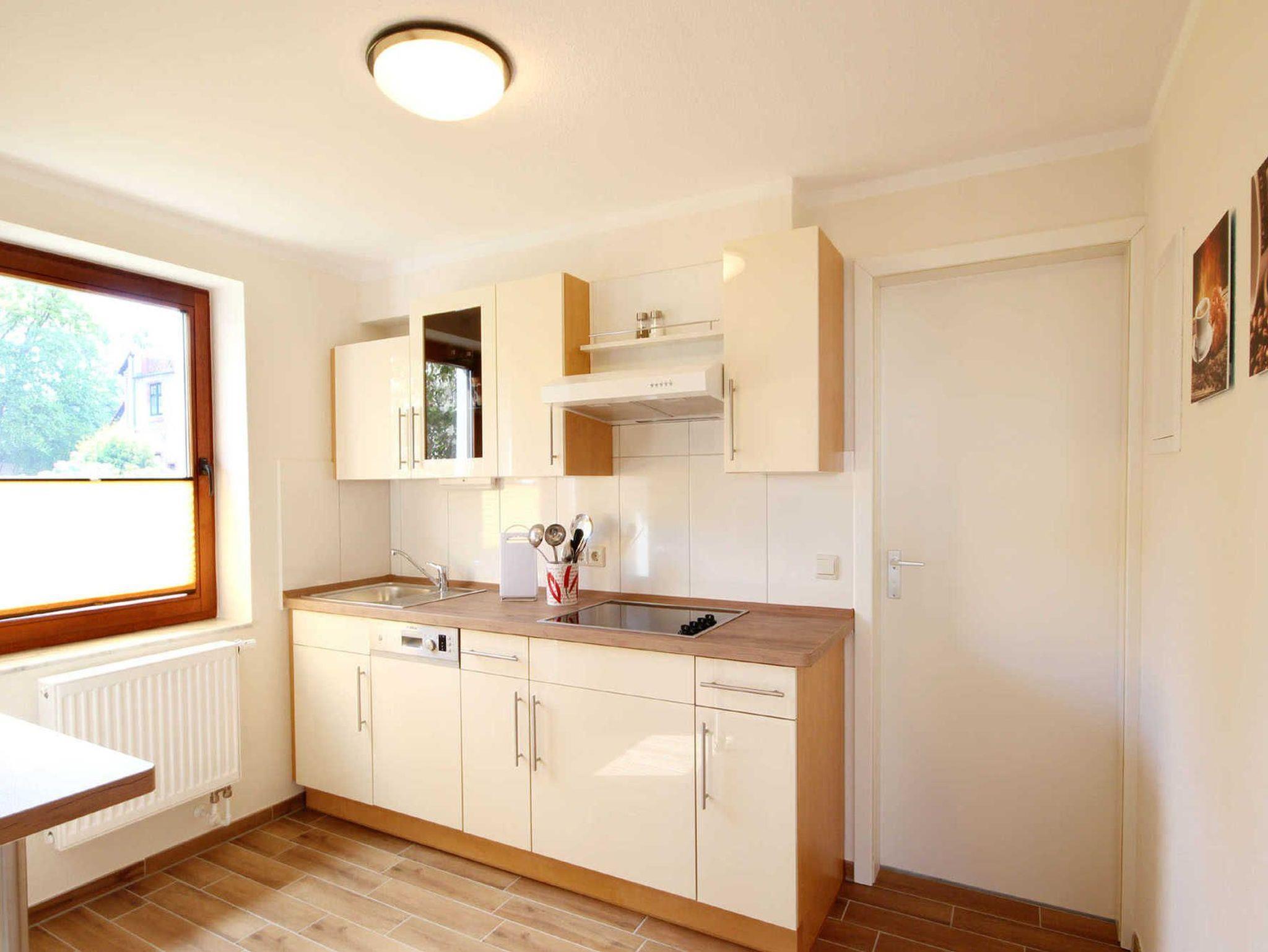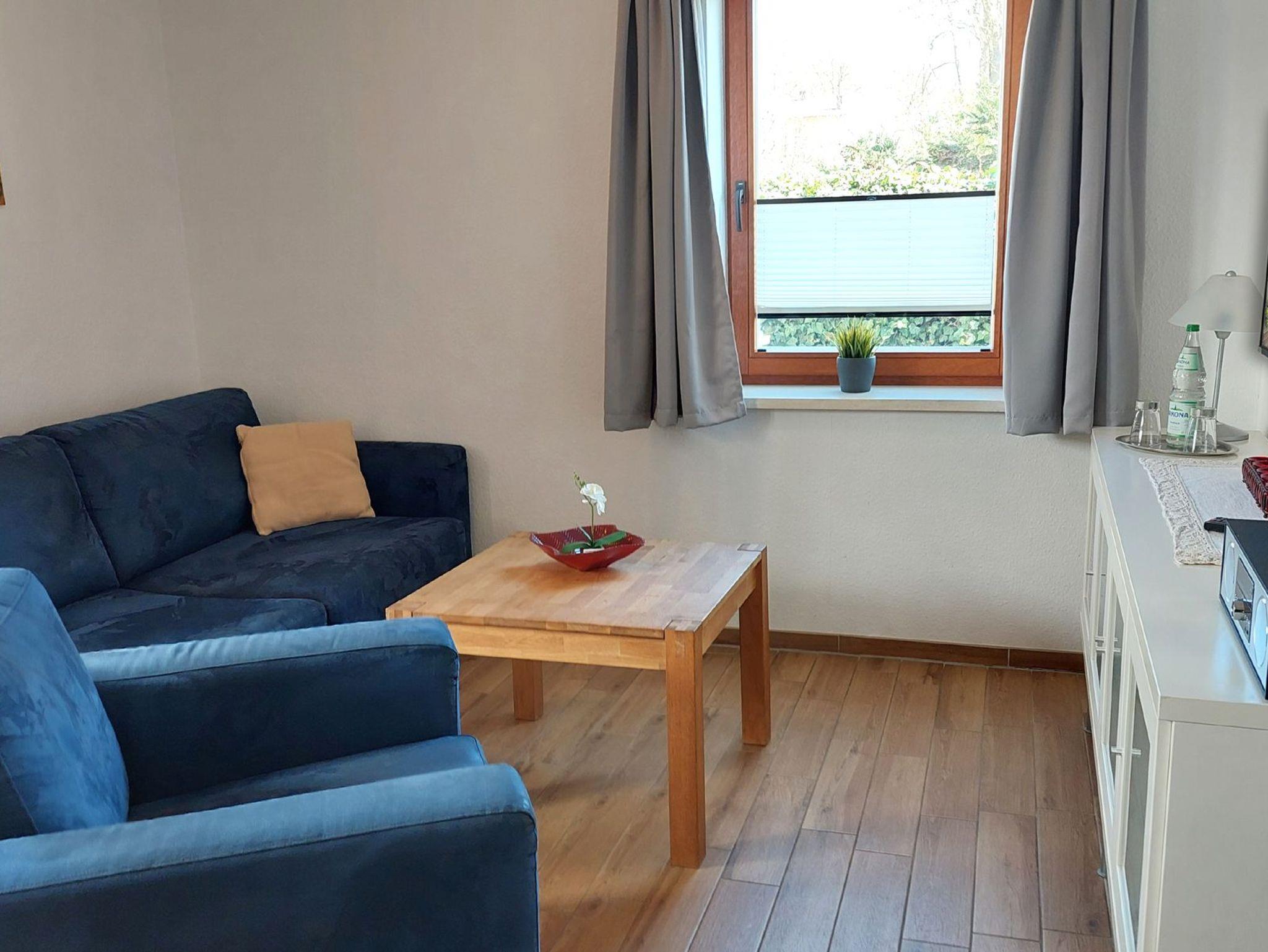 Ihre 2-Raum-Nichtraucherwohnung 64RB4 befindet sich im Erdgeschoss des Hauses. Sie besitzt eine Größe von ca. 45 qm und ist für max. 4 Personen belegbar sowie komplett eingerichtet. Das Appartement teilt sich auf in einen gemütlichen Wohnbereich mit bequemer Sitzecke und Essbereich, eine separate Küche, ein Schlafzimmer und ein Tageslichtbad. Neben dem schönen Wohnraum mit Flachbildfernseher, WLAN und Radio mit CD-Player ist der Schlafraum mit einem Doppelbett, TV, Kleiderschrank und Verdunklungsmöglichkeit ausgestattet. Das komfortable Schlafsofa im Wohnbereich bietet Schlafmöglichkeit für die 3. und 4. Person. Die Küche ist komplett mit Cerankochfeld, Dunstabzugshaube, Kühlschrank, Geschirrspüler, Mikrowelle, Kaffeemaschine, Wasserkocher, Toaster und weiteren diversen Küchenhelfern eingerichtet. Im Badezimmer erwartet Sie eine Dusche, WC, fest installierter Fön und ein Waschtisch. Weitere Highlights: im gemeinschaftlichen Garten steht Ihnen eine extra Grillecke zum Verweilen sowie ein Spielturm mit Rutsche und Schaukeln zur Verfügung. Ein wohnungseigener PKW ? Stellplatz sowie Unterstellmöglichkeiten für Ihre Fahrräder sind direkt am Haus vorhanden. Eine hauseigene Waschmaschine steht Ihnen gegen Gebühr zur Verfügung.