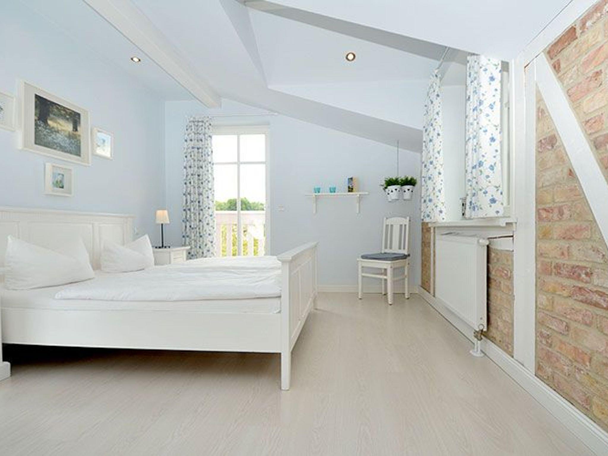 Wohnung 6: Dieses sehr schöne 2-Raum-Appartement im Dachgeschoss ist im weißen Landhausstil eingerichtet und hat eine Wohnfläche von ca. 48 m² sowie einen möblierten Balkon (ca. 5 m²) zur Abendsonne.