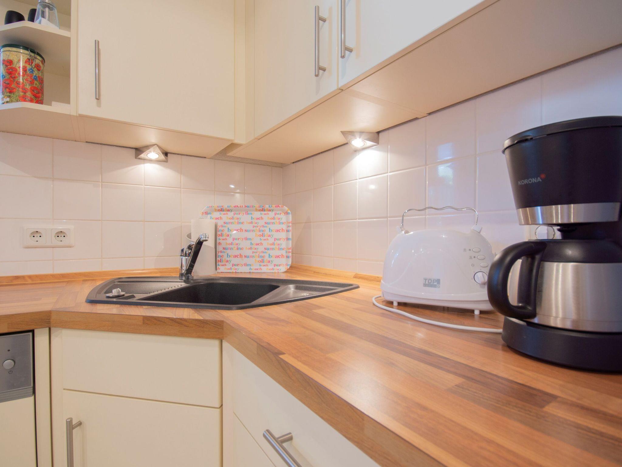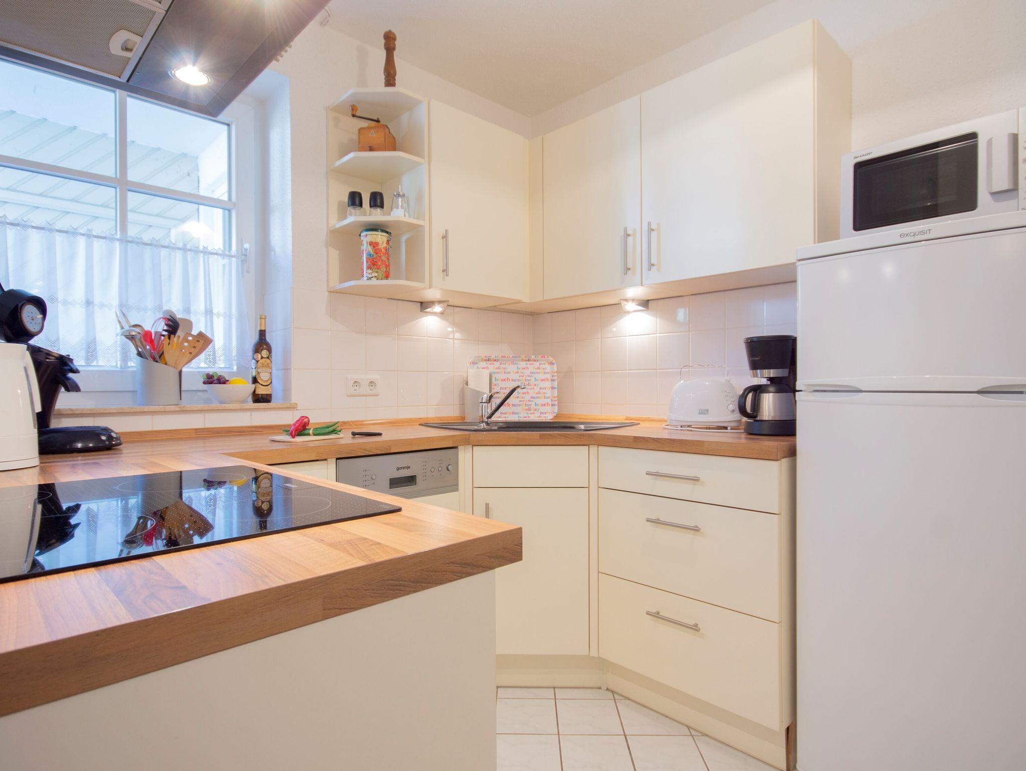 Die voll ausgestattete Küche verfügt über zahlreiche Kleingeräte, wie einen Toaster, einen Wasserkocher, eine Kaffeemaschine, Senseo und vieles mehr. Auch ein Backofen, ein Ceranfeld, ein Geschirrspüler und ein Kühlschrank mit großem Gefrierabteil legen Ihnen die Möglichkeit offen, gemeinsame Kochabende mit der ganzen Familie, oder Freunden zu verbringen. In dem Hauswirtschaftsraum stehen Ihnen eine Waschmaschine und ein Staubsauger zur Benutzung bereit.