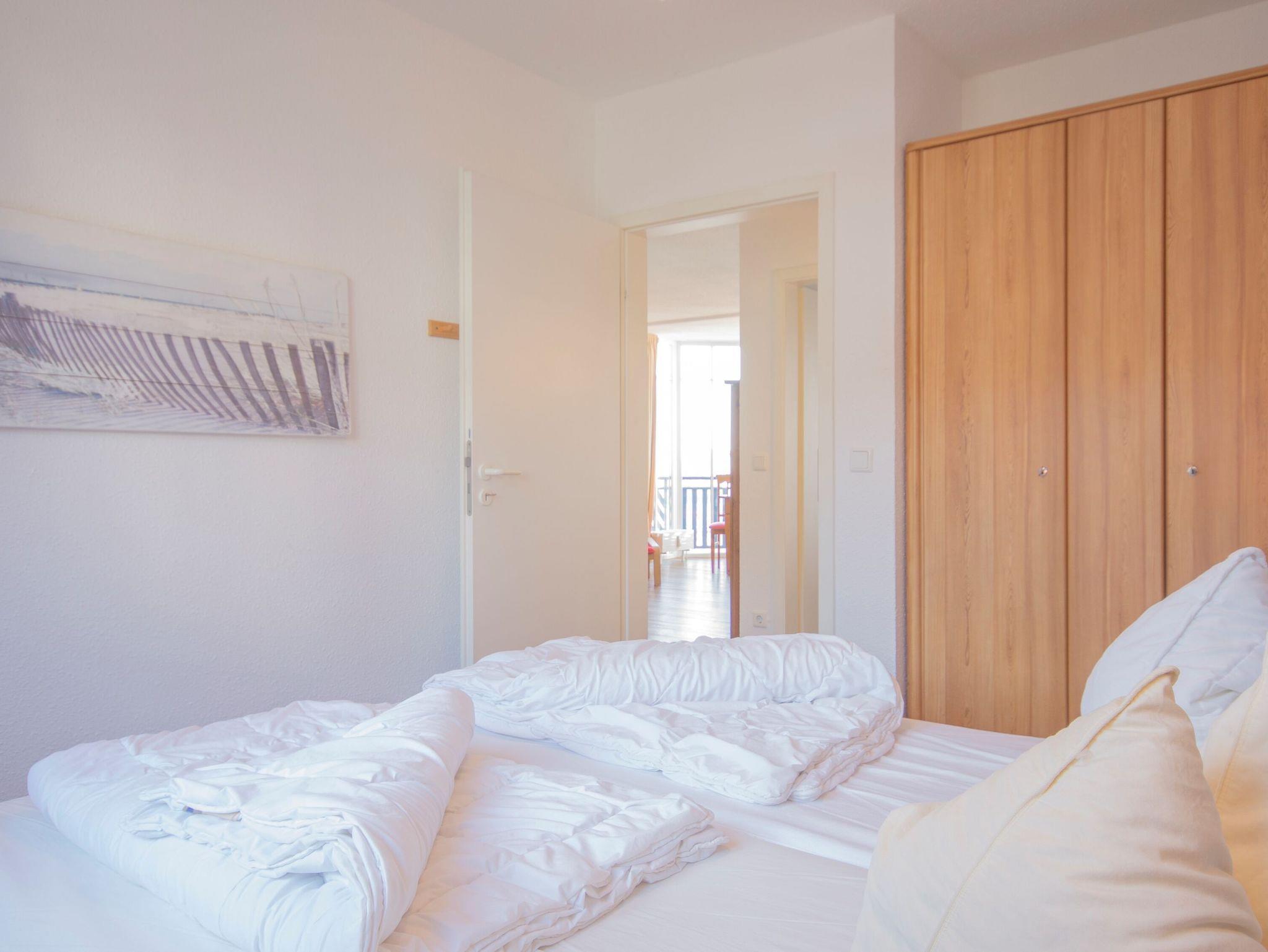 Das Schlafzimmer bietet Ihnen ein großes, gemütliches Doppelbett und einen Kleiderschrank. Eine ausklappbare Schlafcouch befindet sich direkt nebenan im zweiten Schlafzimmer. Dort erwartet Sie ein weiterer TV, ein Schrank, sowie ein zweiter Zugang zum Balkon. Beide Schlafräume garantieren mit Hilfe von Verdunkelungsvorhängen erholsame Nächte. Bei Bedarf steht für Sie auch ein kostenfreies Kinderreisebett (ohne Inlett) und ein Hochstuhl bereit.