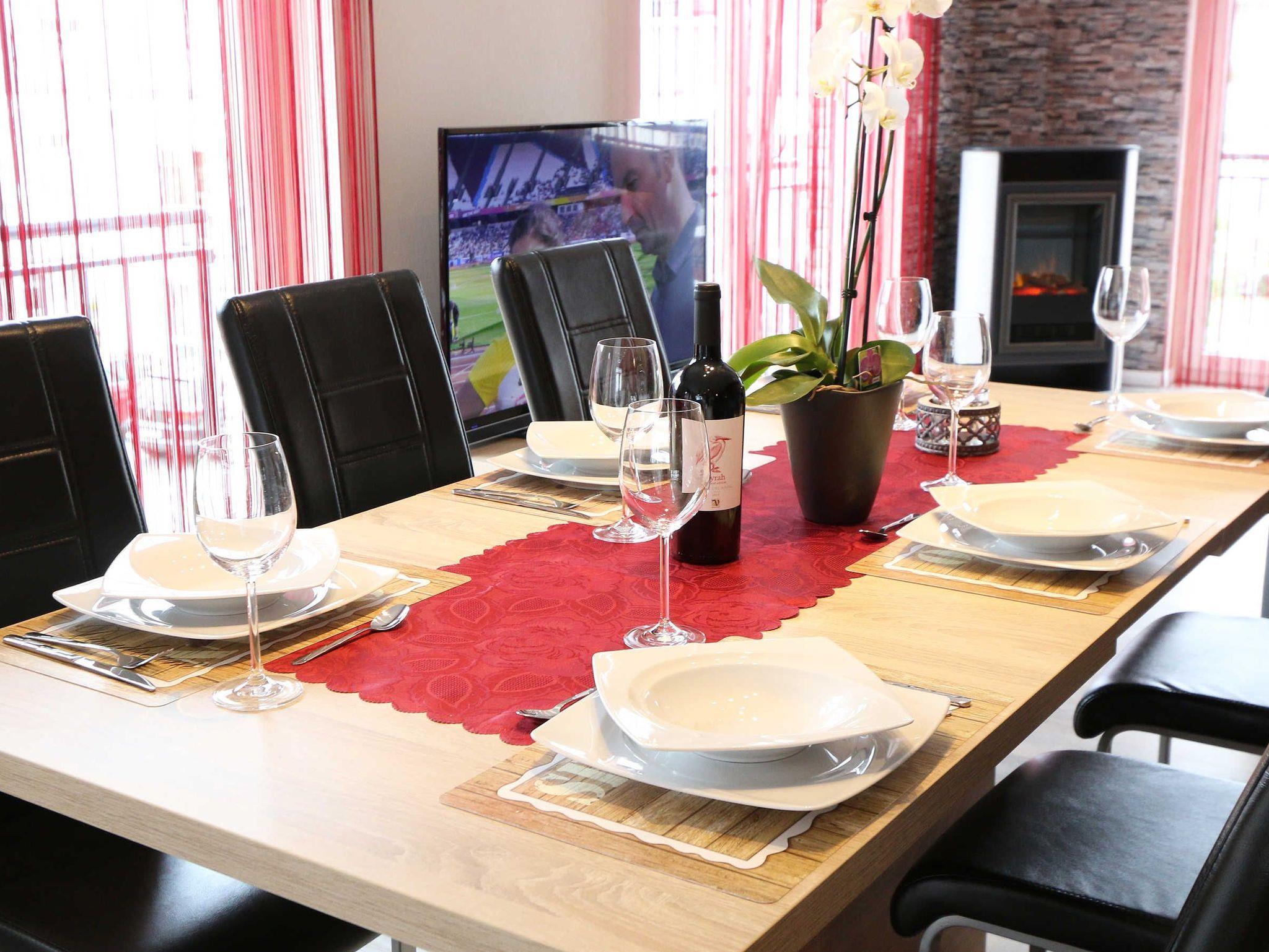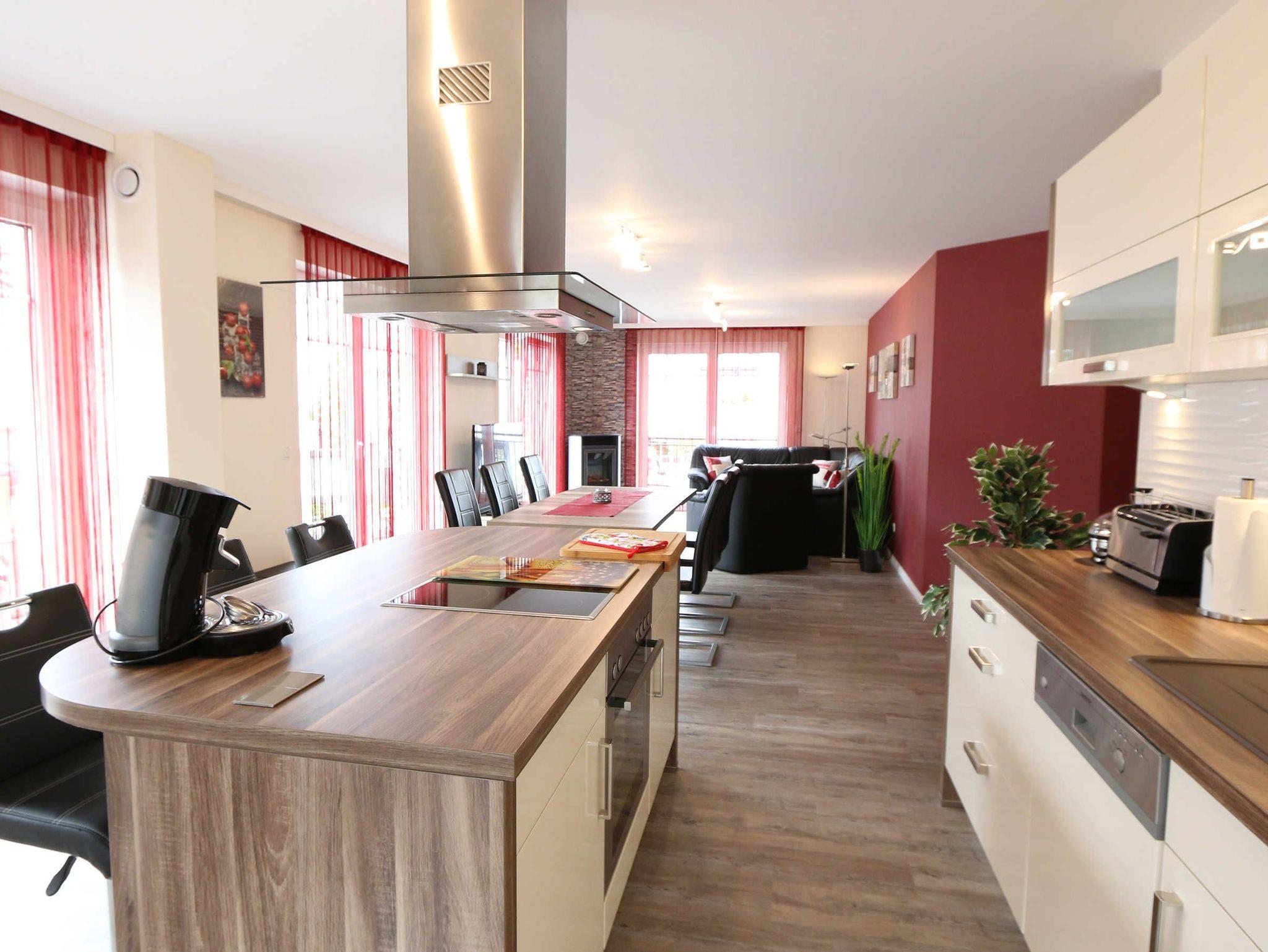 Die komfortabel eingerichtete Ferienwohnung 1 in der Villa Gina mit ca. 108 m² bietet Ihnen ausreichend Platz für 2 bis 6 Erwachsene + 1 Kleinkind bis 3 Jahre im Kinderreisebett. Bereits in der großzügigen Diele erwarten Sie 2 Garderoben. Anschließend kommen Sie in den lichtdurchfluteten Wohn-/Essbereich mit großen bodentiefen Fensterelementen mit einer perfekt geplanten Markenküche. Mit der Kücheninsel mit angrenzendem Tresen und Barhockern werden Sie Freude am gemeinsamen Kochen mit Familie und Freunden haben. Zur Ausstattung gehören ein großer Kühlschrank, Gefrierschrank, Geschirrspüler, Backofen, Ceranfeld sowie eine Mikrowelle. Zu den weiteren kleinen und großen Küchenhelfern gehören Kaffeemaschine, Senseo-Kaffeeautomat, Wasserkocher, Eierkocher, Toaster, elektrische Zitruspresse, Standmixer, Hand- und Stabmixer. Die LED-Beleuchtung an Sockeln und Tresen machen die Küche zu einem gemütlichen Aufenthaltsort. Im angrenzenden Essbereich haben 6 Personen auf bequemen Schwingstühlen ausreichend Platz, ihre Mahlzeiten zu genießen. Im Wohnbereich können Sie es sich auf der großen Ledercouch oder dem Ledersessel bequem machen. Mit einem guten Buch können Sie sich hier entspannen oder auf dem 55 Zoll Smart-TV in Full-HD-Qualität mit Sky (Auswahl von Sport, Film, Dokumentation), LED-Hintergrundbeleuchtung und Netflix Ihre Lieblingssendung anschauen. Auf dem Blu-Ray Player mit USB können Sie Ihre mitgebrachten Filme abspielen. Eine Stereoanlage mit CD, USB und Bluetooth, die auf einem großen Sideboard steht sowie WLAN runden das Entertainmentequipment ab. Die Fußbodenheizung sorgt in Kombination mit den exklusiven Designböden für ein sehr angenehmes Raumklima. Eine automatische Be- und Entlüftungsanlage sorgt zudem für einen hohen Wohnkomfort. Der elektrische Kaminofen bringt Behaglichkeit an kühleren Tagen. Die Terrasse in Südausrichtung mit Ampelschirm sowie eine überdachte Ost-Terrasse sind vom Wohnbereich zu erreichen und bieten zudem einen Kugelgrill. Falls Sie mit Ihrem vierbeinigen Freund gegen eine Gebühr anreisen, ist selbstverständlich in dem rund 47 m² großen Wohn-/Essbereich ausreichend Platz vorhanden für den mitgebrachten Schlafplatz. Elektrische Rollläden befinden sich an der Süd- und Westseite des Raumes. Ein paar Gesellschaftsspiele, Holzspielzeug für die kleinen Gäste sowie einige Bücher finden Sie ebenfalls vor. Kindersicherungen an den zugänglichen Steckdosen sind vorhanden. Für Ihren erholsamen Schlaf stehen Ihnen insgesamt 3 komfortable Schlafzimmer zur Verfügung. In 2 Schlafzimmern finden Sie jeweils ein Boxspringbett mit Taschenfederkernmatratzen und Komfort-Topper in der Größe 1,60m x 2,00m, Nachttischablagen mit dimmbarer Beleuchtung und USB zum Aufladen von Handys oder E-Books, Radiowecker, einen Kleiderschrank sowie einen 32 Zoll-Flachbild-TV mit Smart-TV. Beide Schlafzimmer haben elektrische Rollläden. Im 3. Schlafzimmer befindet sich ein Boxspring-Einzelbett (1,00m x 2,00m) sowie eine bequeme Schlafcouch (1,50m x 2,00m), die tagsüber als Sofa dient. Abgerundet wird das Schlafzimmer mit einem 32 Zoll-Flachbild-TV mit Smart-TV sowie einem Kleiderschrank und 2 Nachttischablagen mit dimmbarer Beleuchtung sowie Radiowecker. Verdunklungsvorhänge sorgen für einen ungestörten Schlaf. Die beiden hochwertigen Tageslicht-Bäder mit Fußbodenheizung sorgen dafür, dass es zu keinem morgendlichen Stau kommt. Das eine Badezimmer ist ausgestattet mit einer bodentiefen Echtglasdusche, Badewanne, 2 Waschplätzen und Spiegelschrank, WC, Kosmetikspiegel, Handtuchtrockner und Fön. Das zweite Bad hat eine Walk-In-Dusche, 1 Waschtisch und Spiegelschrank, WC sowie ebenfalls Handtuchtrockner und Fön. Zusätzlich gibt es in der Wohnung noch einen Abstellraum. Hier befinden sich ein Hochstuhl für die kleinen Gäste sowie Staubsauger und Reinigungsutensilien. Im Untergeschoss befindet sich ein Wirtschaftsraum mit Waschmaschine und Trockner, die kostenfrei genutzt werden können. Ein Wäschetrockner, Bügelbrett und ein Bügeleisen stehen Ihnen ebenfalls zur Verfügung. Des Weiteren finden Sie hier die gemeinschaftliche Sauna mit einer separaten Walk-In-Dusche mit Waschbecken und WC sowie einen angrenzenden Ruheraum mit Liegen und Relax-Stühlen, außerdem ein elektrischer Wandkamin und eine atemberaubende Fototapete. Lassen Sie sich überraschen. Im Außenbereich finden Sie jeweils einen Parkplatz (Nr.01) sowie einen abschließbaren Fahrradschuppen mit Steckdose zum Aufladen für Ihr E-Bike für jede Wohnung. Darin befinden sich auch die kostenlos zur Verfügung gestellten Bollerwagen für Ihre Strandutensilien. Die Erstausstattung eines Wäschepaketes (komplette Bettwäsche, 1 Duschhandtuch, 1 kleines Handtuch) können Sie bis 14 Tage vor Anreise gegen einen Aufpreis dazu buchen oder durch eigene ergänzen. Ab 2 gebuchten Paketen erhalten Sie einmalig 1 Geschirrhandtuch und 1 Duschvorleger hinzu. Wir wünschen Ihnen einen erholsamen und erlebnisreichen Urlaub!