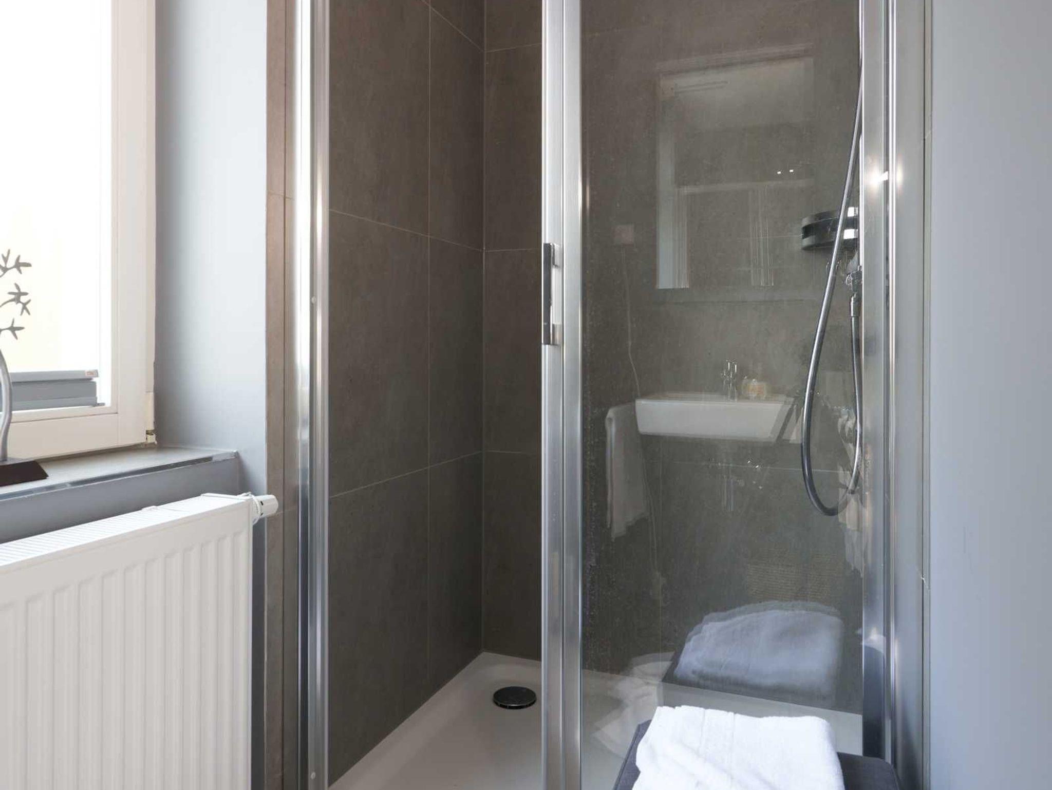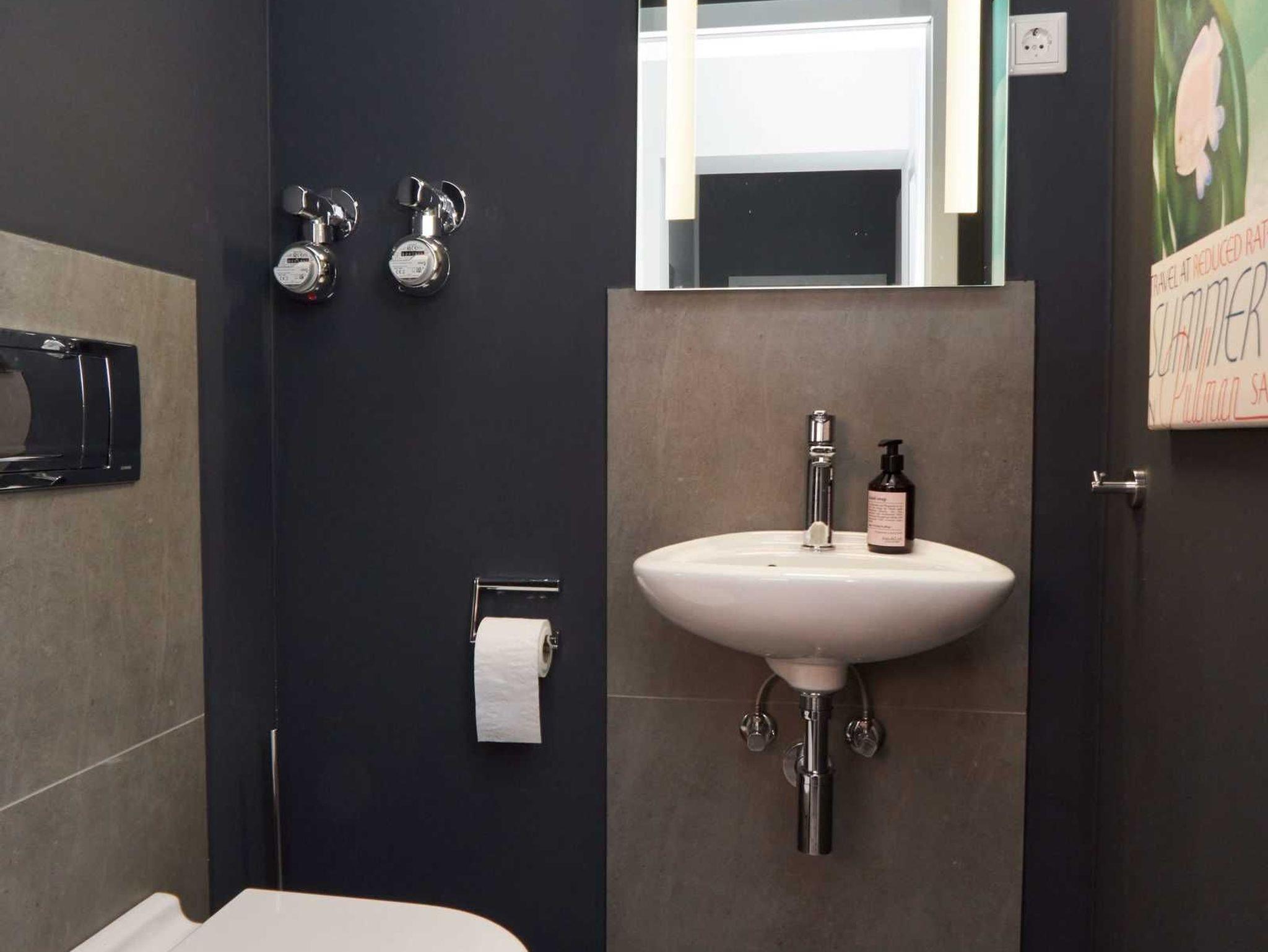 Weiterhin gibt es im Appartement ein geräumiges Badezimmer mit Dusche und ein separates WC mit Handwaschbecken.