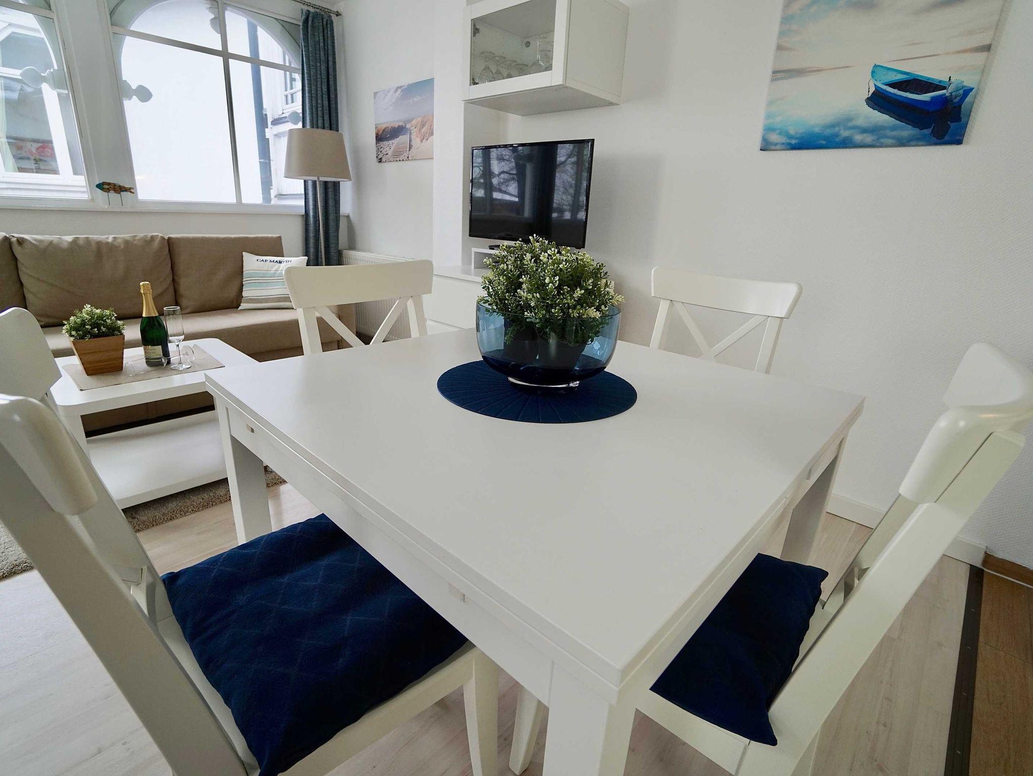 Das gemütlich eingerichtete Ferienappartement Mönchgut (A) bietet auf 44 m² eine moderne Unterkunft für bis zu 4 Gäste. Es verfügt über einen Wohn-Schlafraum mit Doppelbett und einem Schlafsofa für weitere zwei Gäste. Entspannen Sie vor dem Flachbild-TV oder ziehen Sie sich mit einem guten Buch in den bequemen Lesesessel in den integrierten Wintergarten zurück.Der WLAN-Zugang und ein SodaStream steht Ihnen kostenfrei zur Verfügung. Die hübsche Landhausküche ist mit allem ausgestattet, um Ihre Mahlzeiten zuzubereiten. Der Essbereich ist ebenfalls in diesem Wohn-Schlafraum. Zur Wohnung gehört ein helles Tageslicht-Duschbad. Ein Fön gehört ebenfalls zur Ausstattung. Ein Kinderreisebett (bis zwei Jahre) kann bei Bedarf bereit gestellt werden.