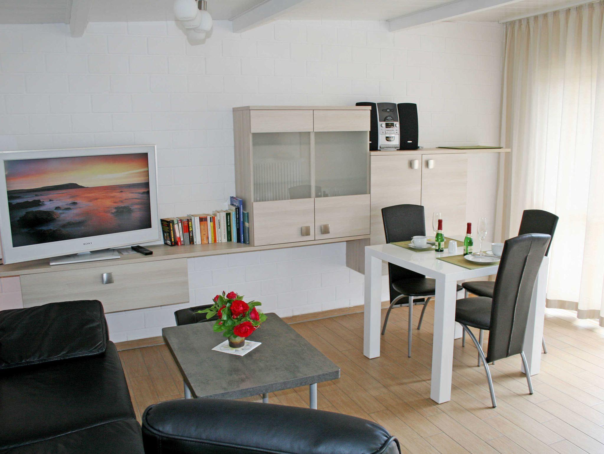 Das Ferienhaus Marit ist ca. 35 qm groß, hat Platz für maximal 3 Erwachsene und wurde modern und komfortabel eingerichtet. Im Wohnraum befinden sich eine bequeme Sitzcouch mit Tisch, Telefon; ein modernes Flachbild-TV-Gerät und eine Musik-Anlage. Hier steht auch ein Esstisch mit Stühlen. Die moderne Küchenzeile ist mit einem Herd, Wasserkocher, Kaffeemaschine, Toaster und Kühlschrank komplett ausgestattet. Im Schlafzimmer befindet sich ein bequemes Doppelbett mit Leselampen sowie ein Kleiderschrank. Für einen dritten Gast kann ein Schlafsessel aufgebettet werden. Ein kleines Kinderreisebett und ein Hochstuhl können auf Wunsch kostenlos bereit gestellt werden.